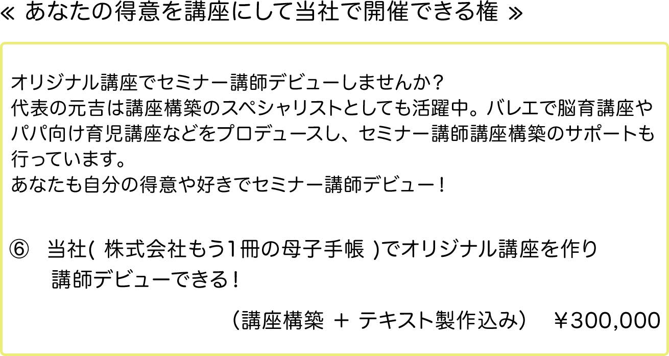 その後4年間は、幼児教育のスペシャリストとして、育児・脳育講座を全国で6000人以上のママ達に開催。保育士や園長、保育園経営者など、子どもに関わる専門家にも多数指導する。