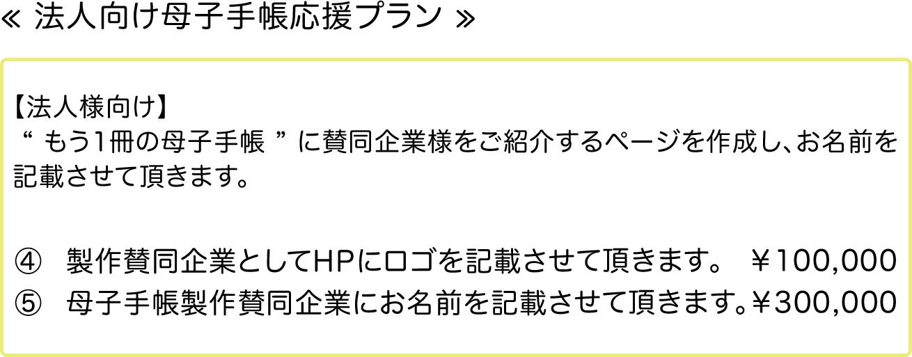 株式会社もう1冊の母子手帳は今年設立したばかりの会社で、今すぐに母子手帳を制作して届ける資金がありません。