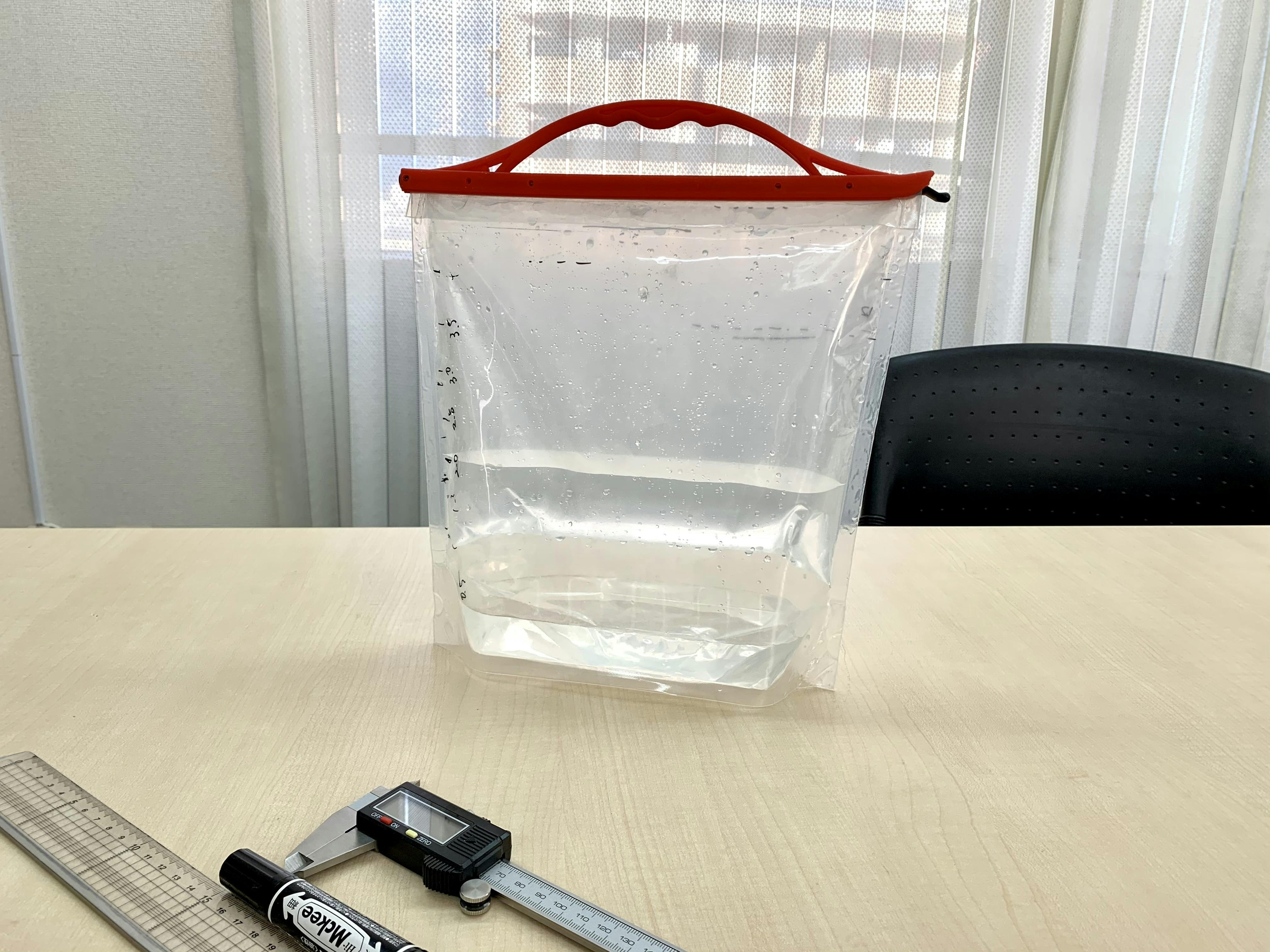 袋に水を入れてみると中が別々の部屋になっていて、もちろん触れることも混ざることもありません。そうそうコレコレ!