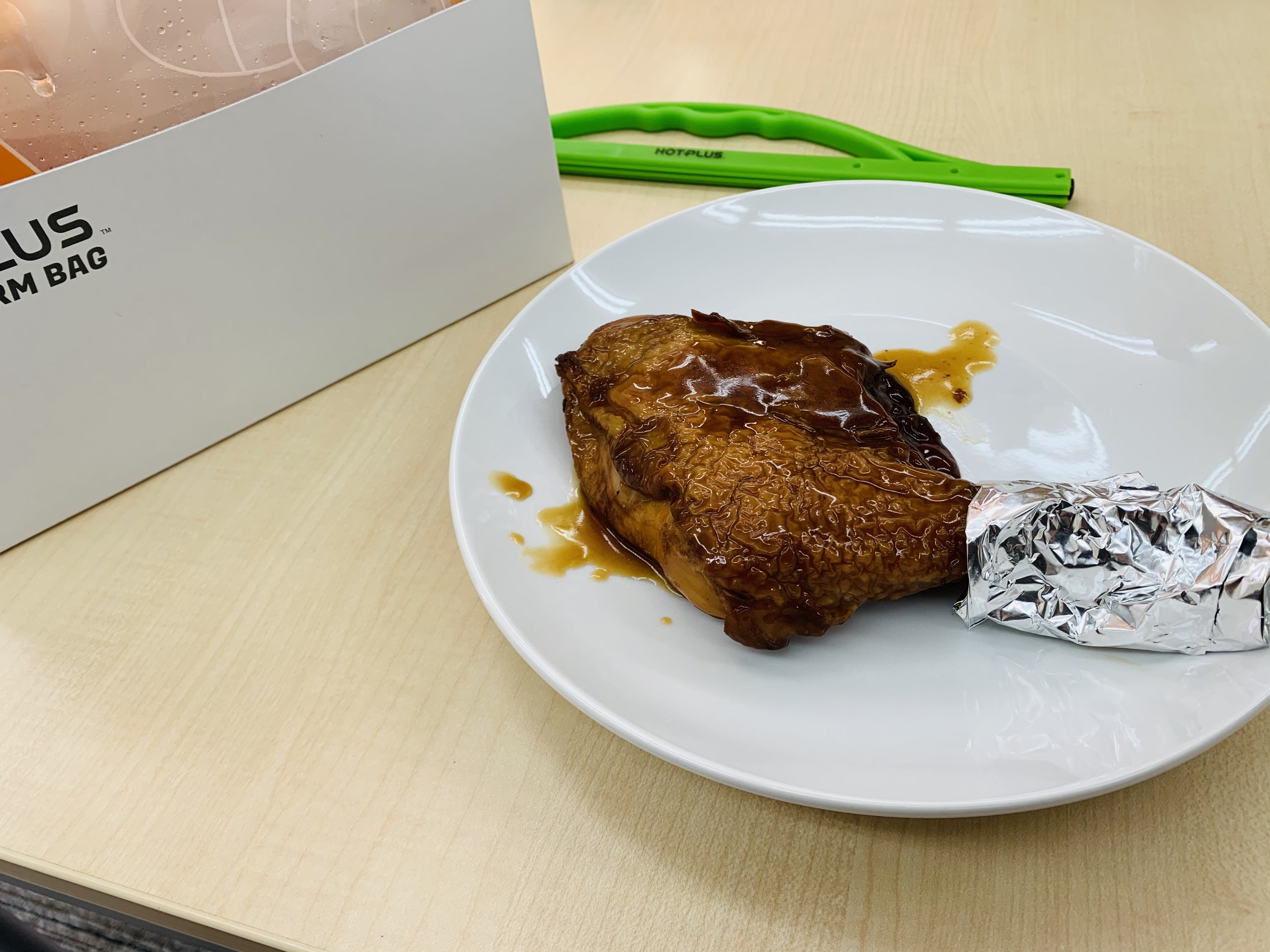 ということでクリスマスの今日はチキンレッグを温めてみようと思います。