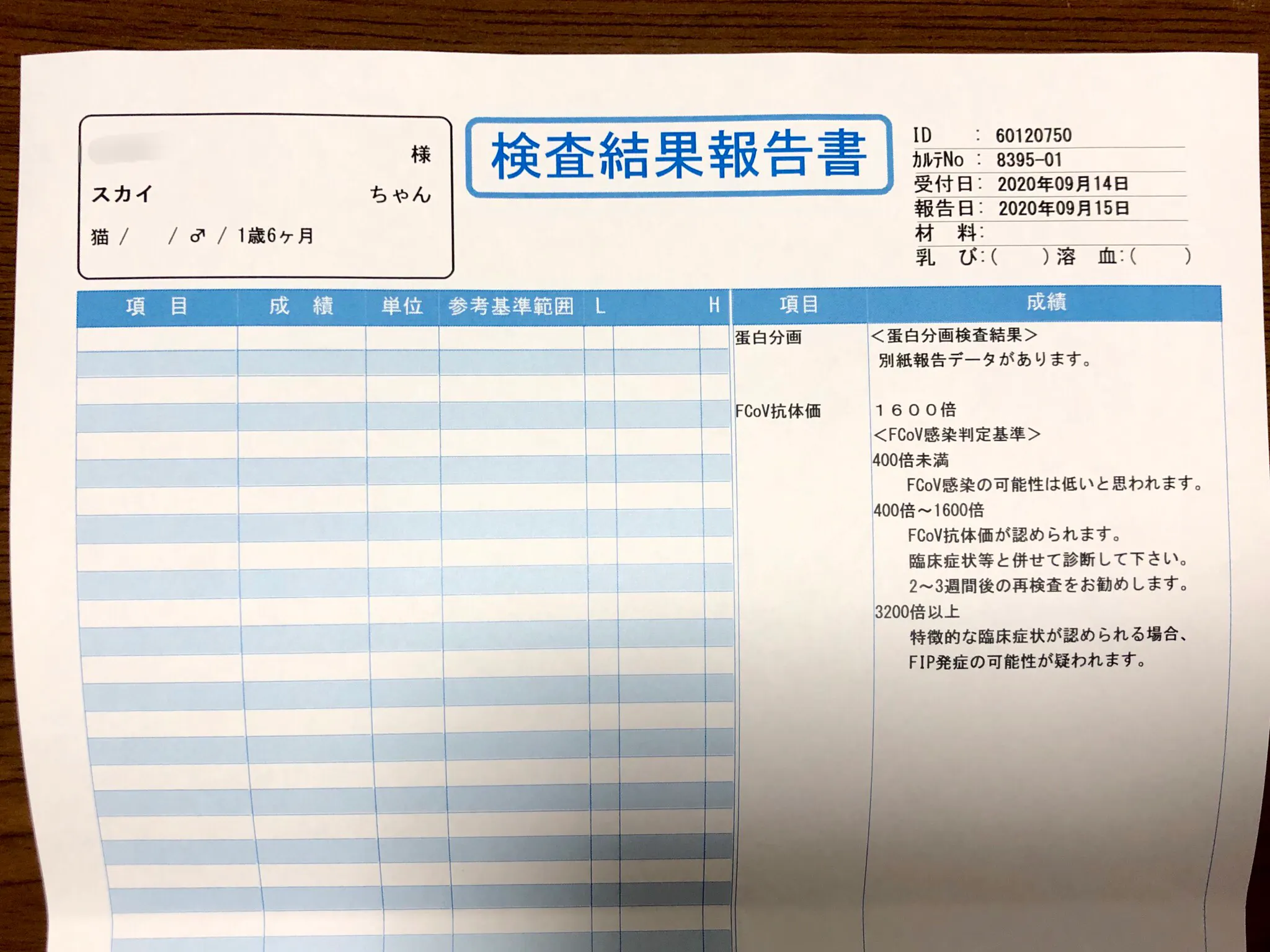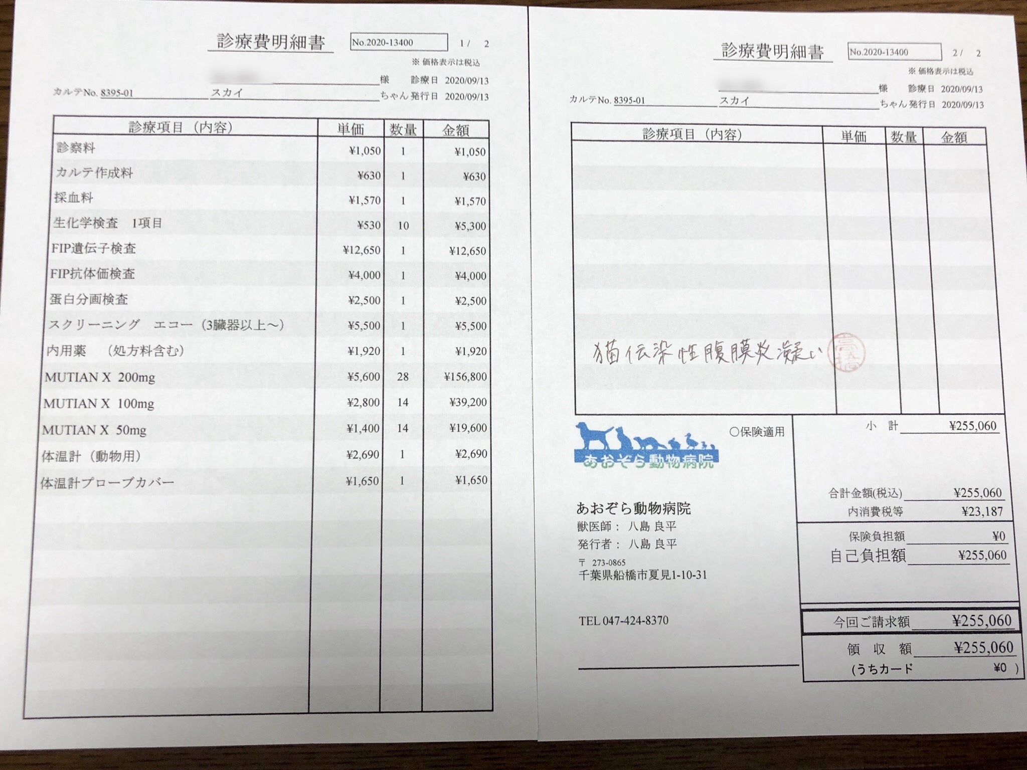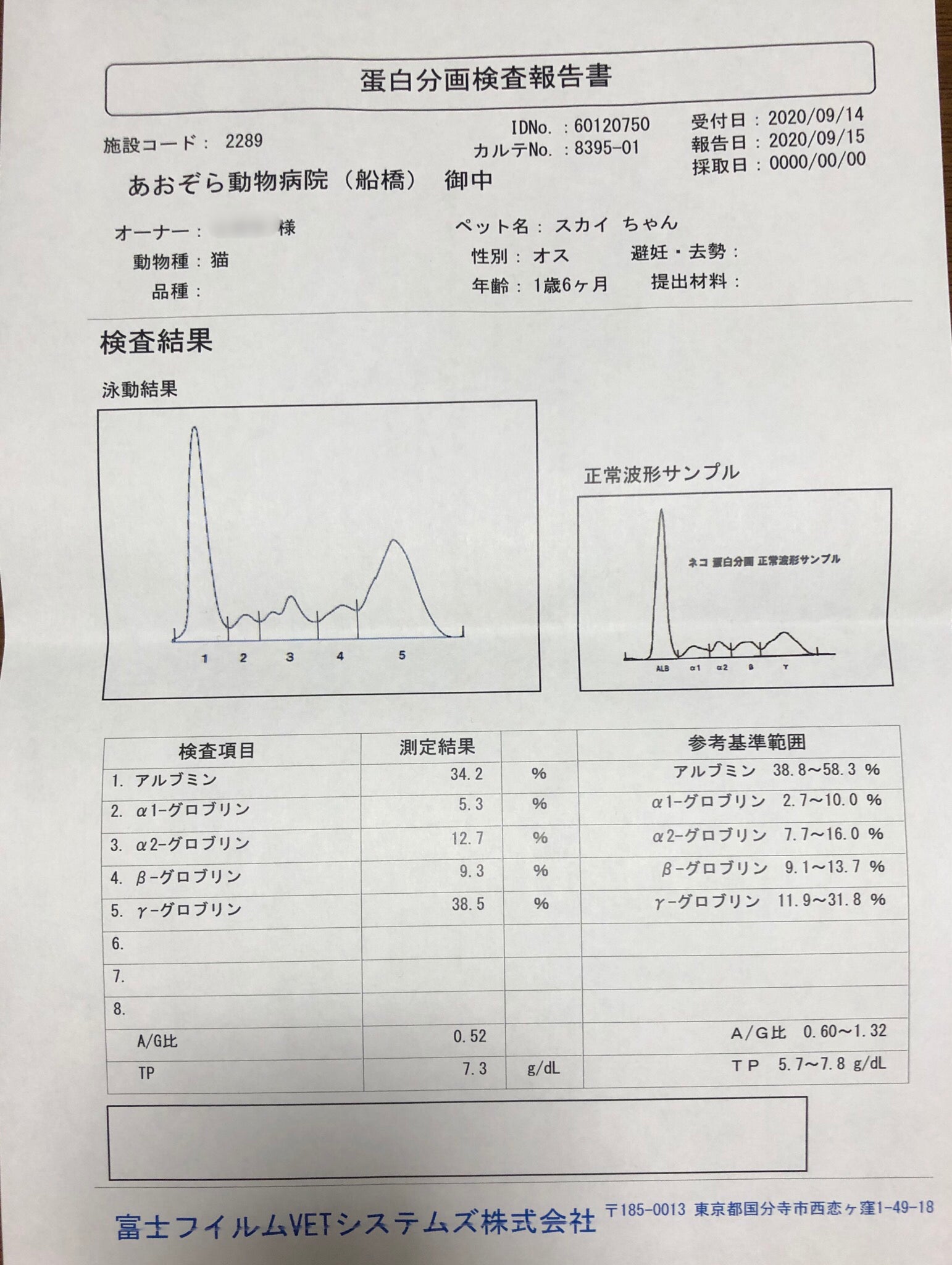 9/24には遺伝子検査や血液中のタンパクの検査、抗体検査の結果から、FIPで確定だと診断を受けました。