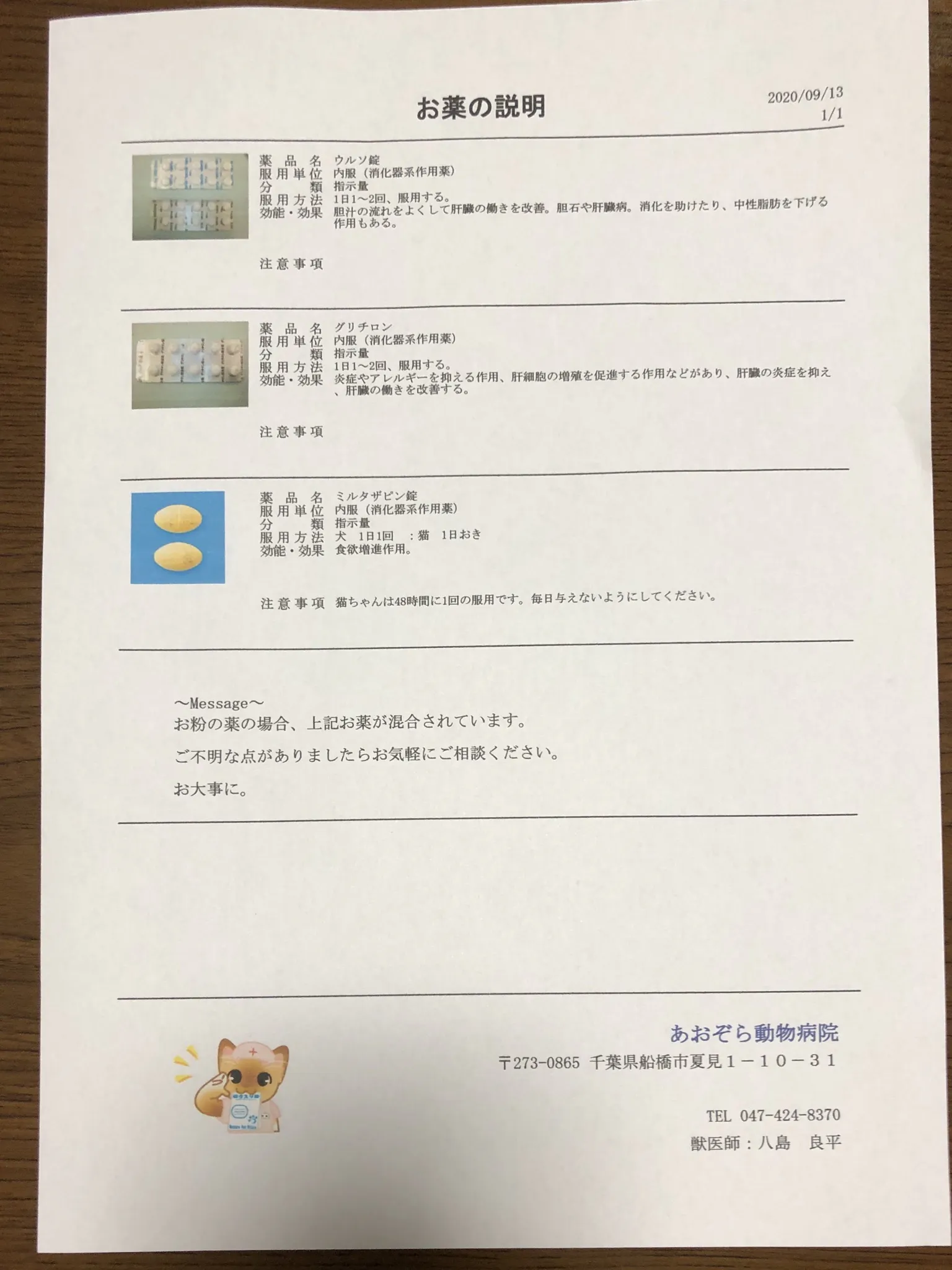 また、肝臓の数値が悪く食欲もなかったためそのための薬の処方もありました。