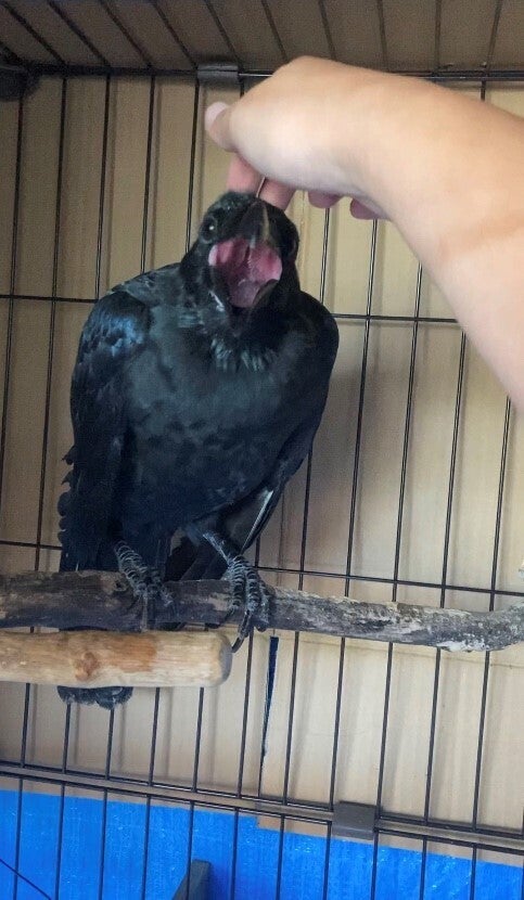 カラス1羽 保護時より障害があり、片目が見えません 定期健診中