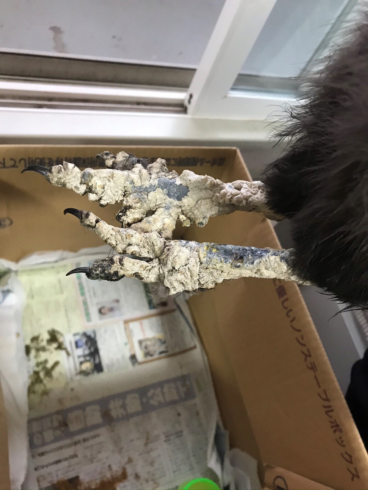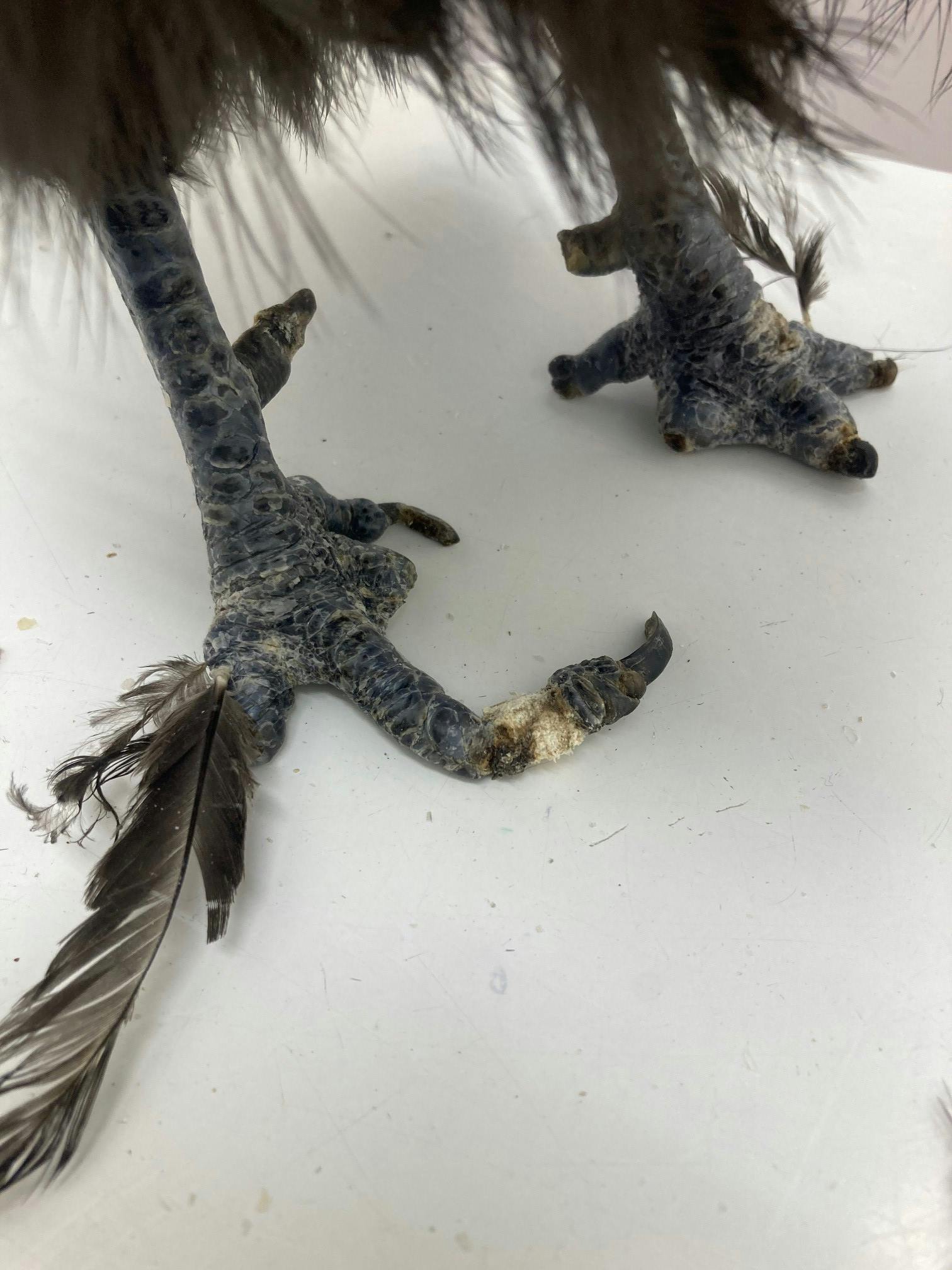 羽はボロボロで皮膚が見えている箇所もありました。