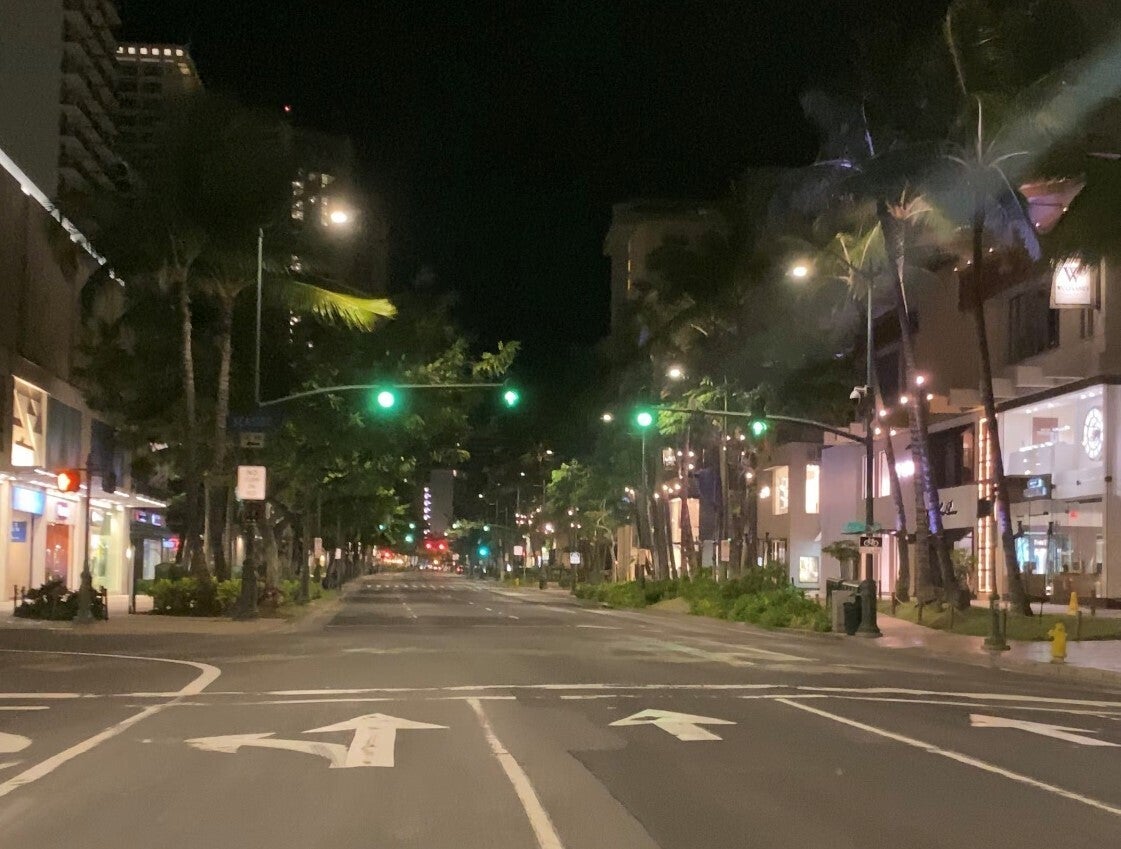多くの観光客で賑わっていたワイキキ・カラカウア通りは、朝も夜も驚くほど人がいなくなってしまいました。