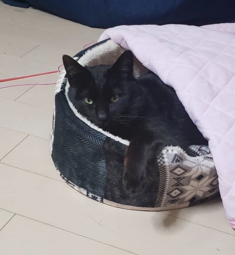 ・くぅは元々野良猫でした。野良猫時代は時々家の庭に遊びに来ていました。去年の12月、空いている窓から家の中に入ってきました。その時はガリガリに痩せてしまっていて、フードとお水をそっと置いたらパクパク食べてくれました。そして私達は縁を感じ家族会議の末に、保護して家族になることを決めました。保護してから2週間程は「シャー」と怖い顔で威嚇ばかりして近づく事も出来ませんでしたが、今では同じ猫だと思えない程、家族に慣れてくれてとても甘えん坊な子に変身しました。くぅは推定3〜10歳の男の子で、とても甘えん坊で優しくお利口な猫です。ちょうど1ヶ月前、我が家の愛犬と突然のお別れをし、悲しみに暮れた私達に、側で寄り添い元気と気力を与え続けてくれていました。