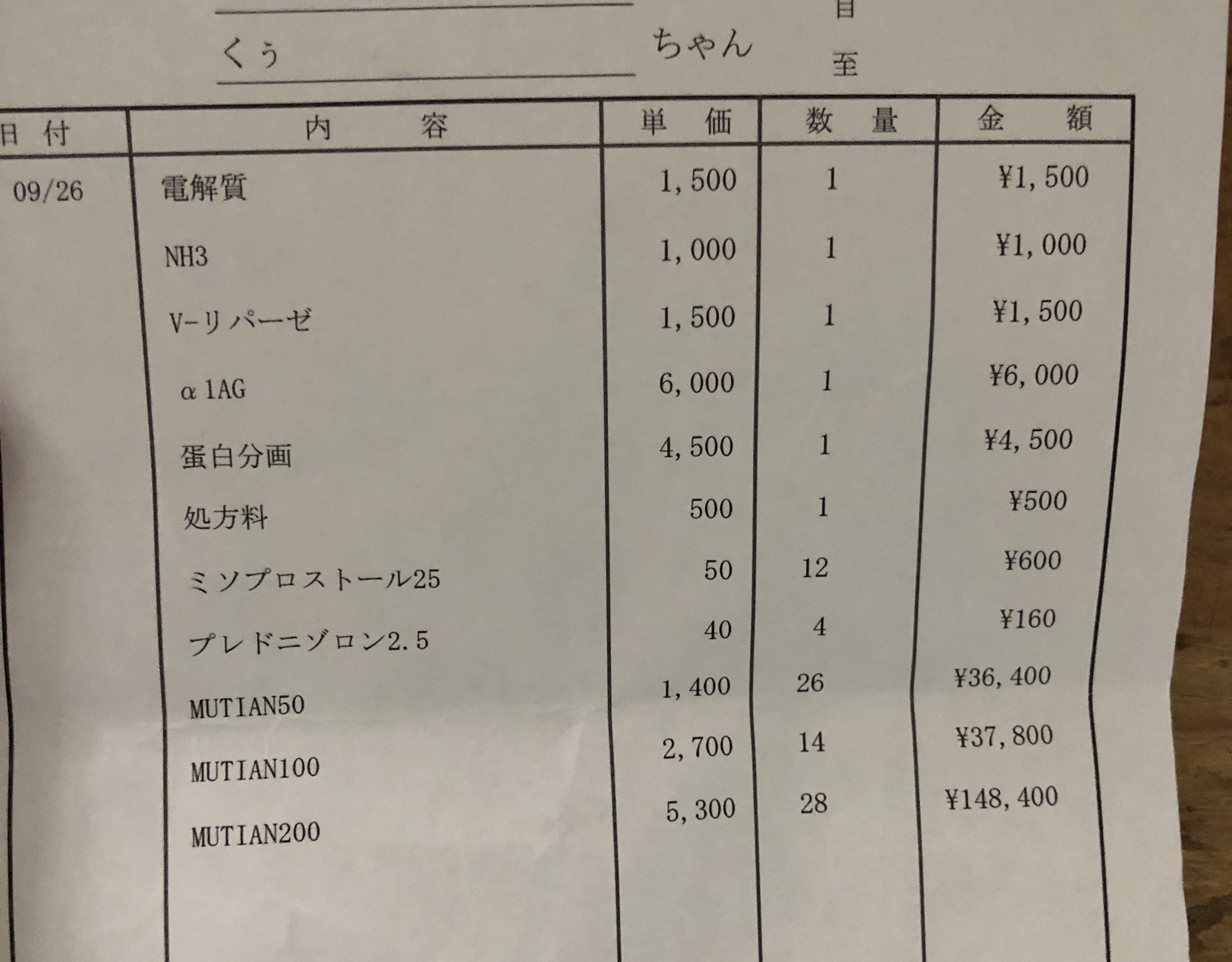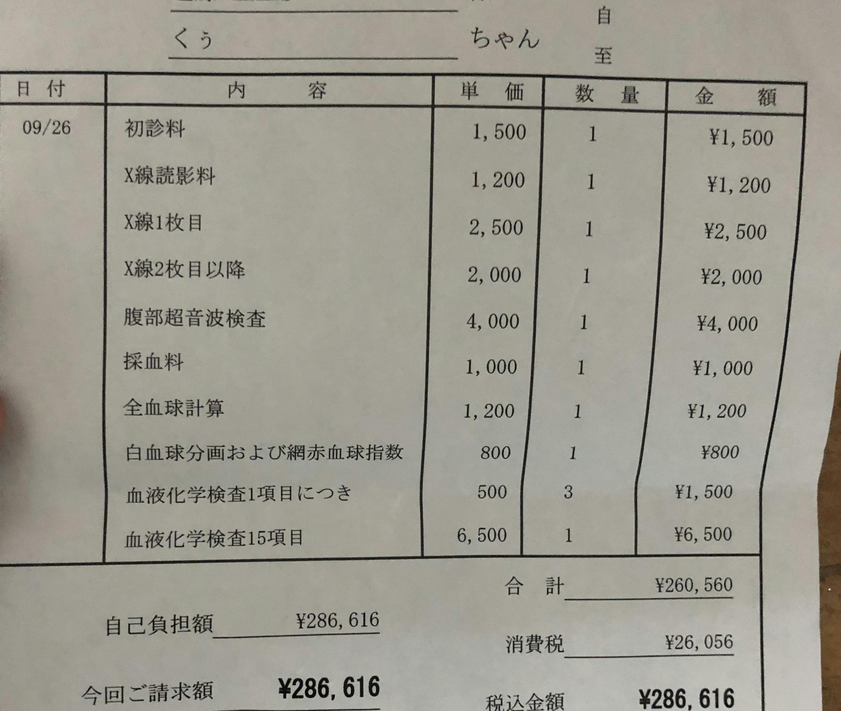 ※その時の診療明細です。くぅの場合はその時体重が5.38kgあり、5.5kgまではお薬を毎日550mg、毎日同じ時間に飲まなければなりませんでした。