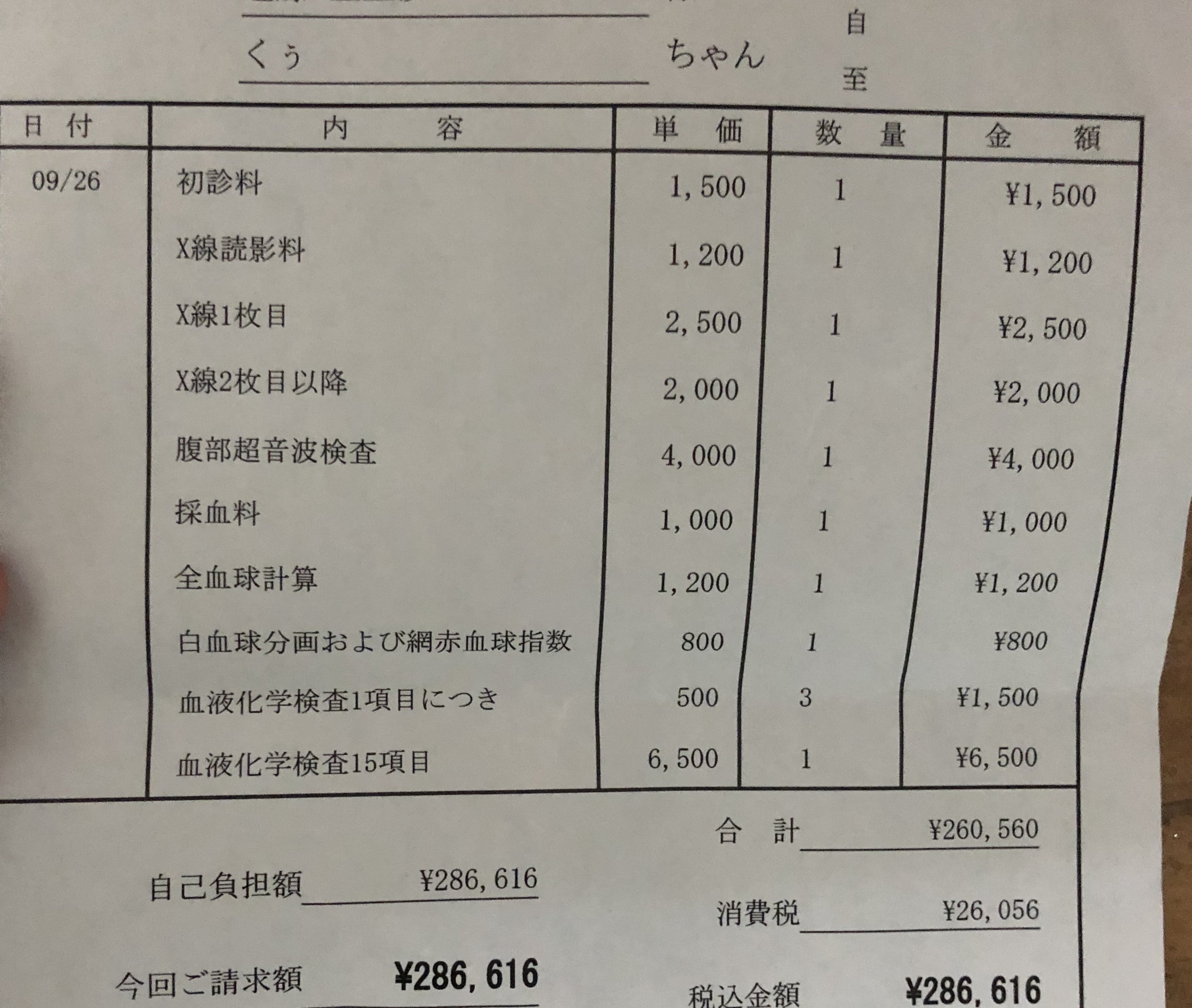 ※その時の診療明細です。くぅの場合はその時体重が5.38kgあり、5.5kgまではお薬を毎日550mg、毎日同じ時間に飲まなければなりませんでした。