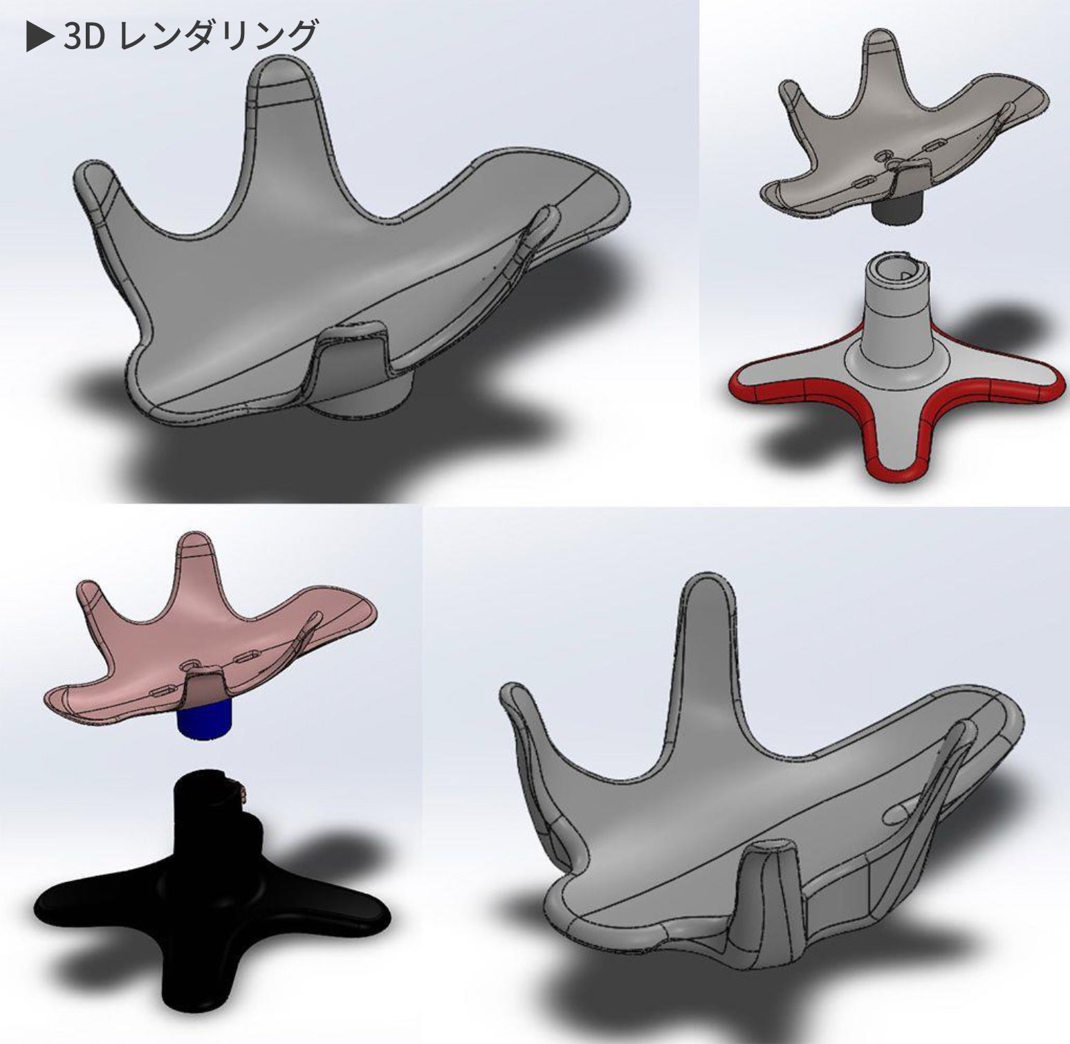 ペットのお腹を安全に支えられる仕組みにするため、胸から腹部を支えるパーツは人の手の形考案、デザインに反映し今の形になりました。