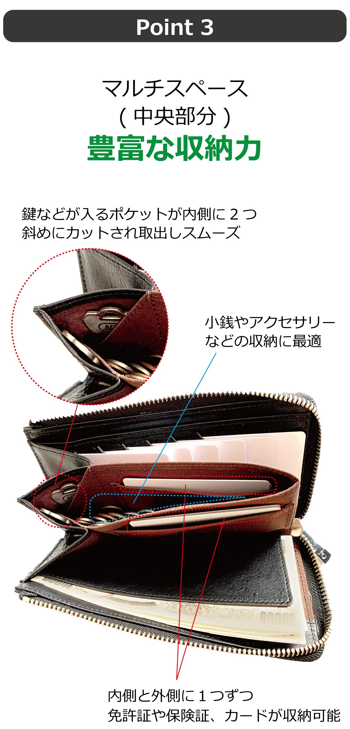 それは「使用時の快適さ」です。どんなに見た目が良くても、実際に使ってみたら小銭が落ちてしまう、紙幣やカードが取り出しづらい、ファスナーが閉まらないなど、使い勝手が悪くては台無しです。私共はご購入頂いた方に満足して頂ける「こだわりのモノ創り」をコンセプトに商品開発をしています。