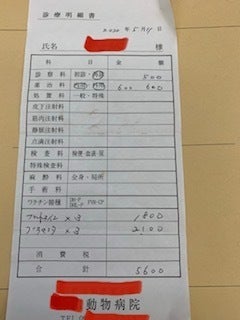 画像は今年に入って保護した子たちの不妊手術やワクチン、血液検査などを行った際の領収証(一部)です。