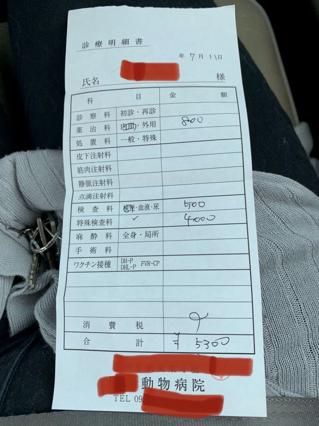 ワクチン(3種)4,000円×5匹=20,000円