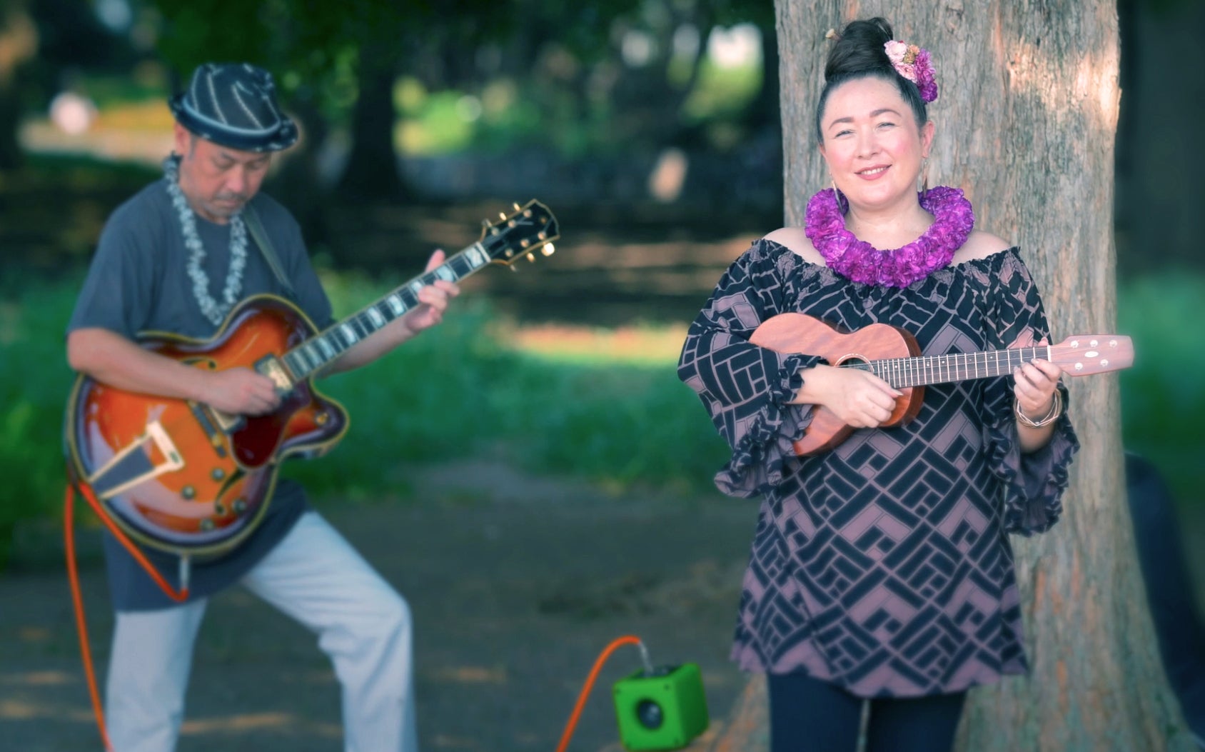 私たちはハワイと日本を繋ぐ歌姫、ManaLeone Hasegawa をメインボーカリストに、フラダンサー上原まき、そしてデザイナーやミキサーなど各方面から集まった音楽とフラを通じて協力しあう 5 人のグループです。コロナ禍の中で始まり、災厄の終息を願ってハワイアンミュージックやフラを通じて様々な活動を行なってまいります!