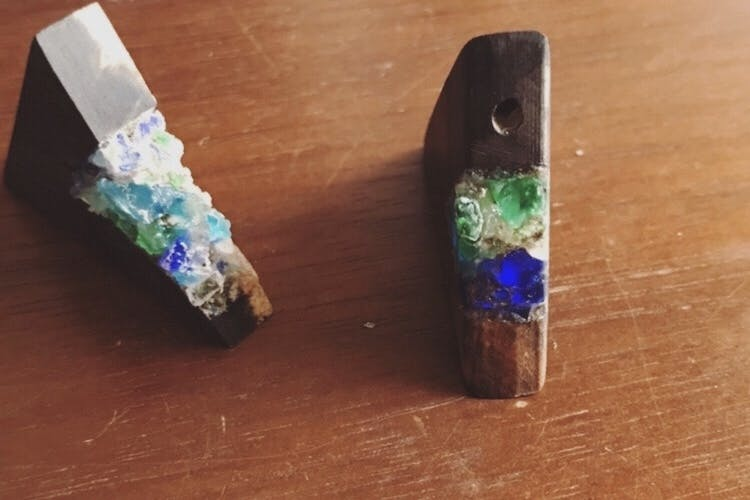 こちらが、琉球黒檀と琉球ガラスのペンダントです。