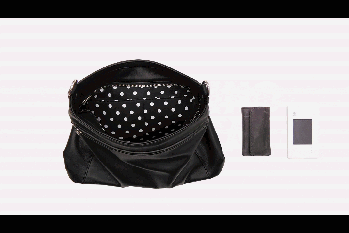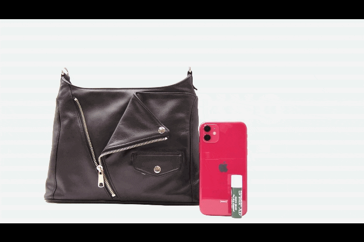 ※実際にはホックを開閉せず、スマートフォンの収納が出来ます。