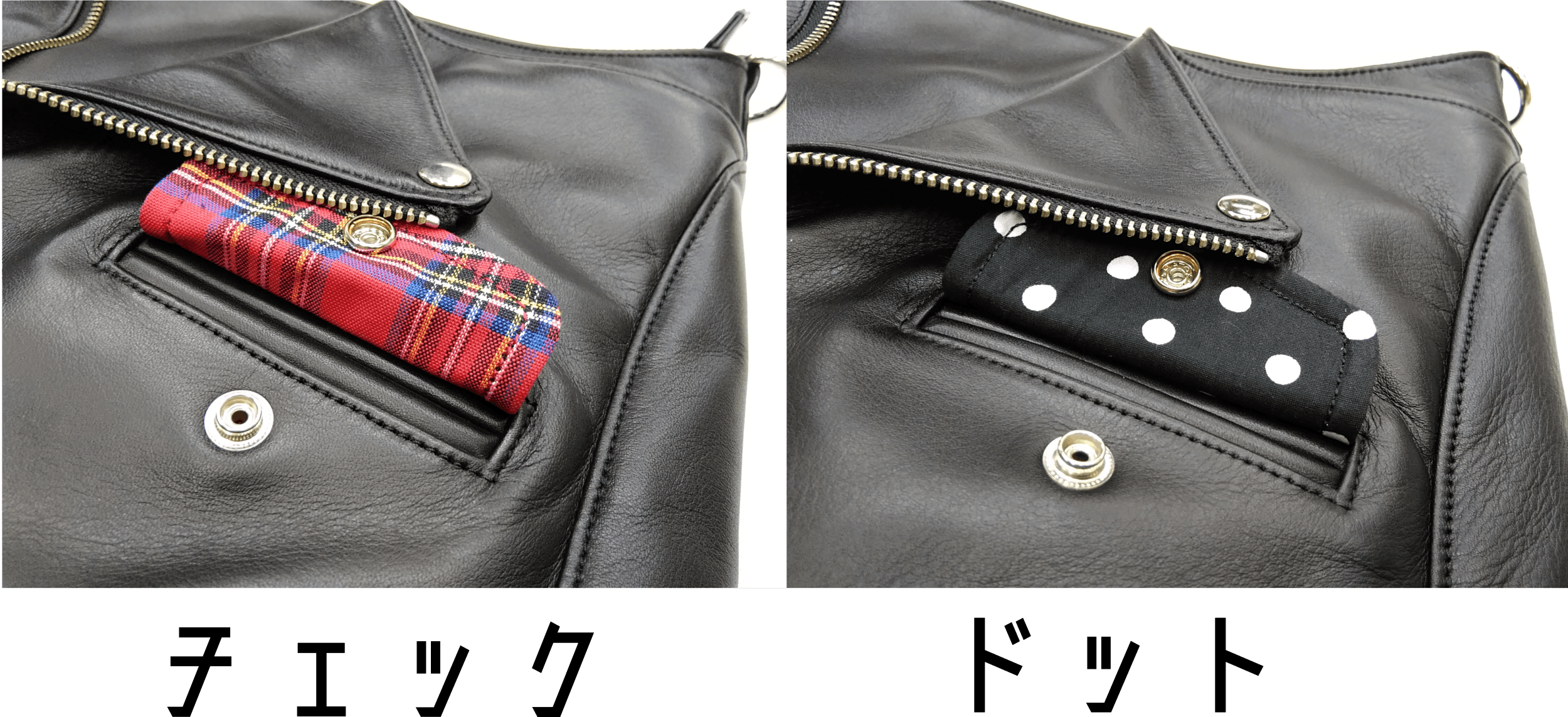 フラップ・玉縁を付け実際のライダースジャケットをイメージしています。