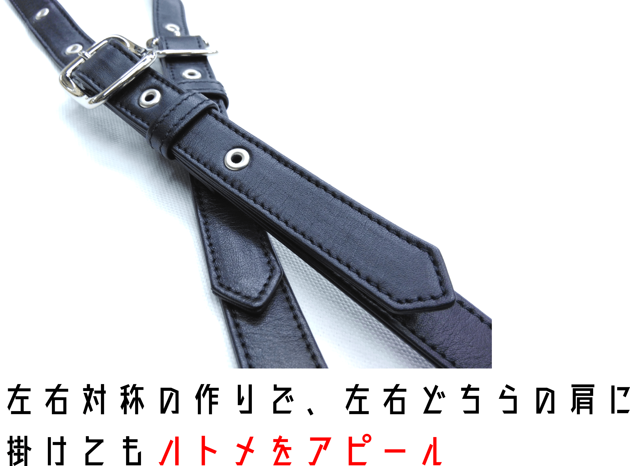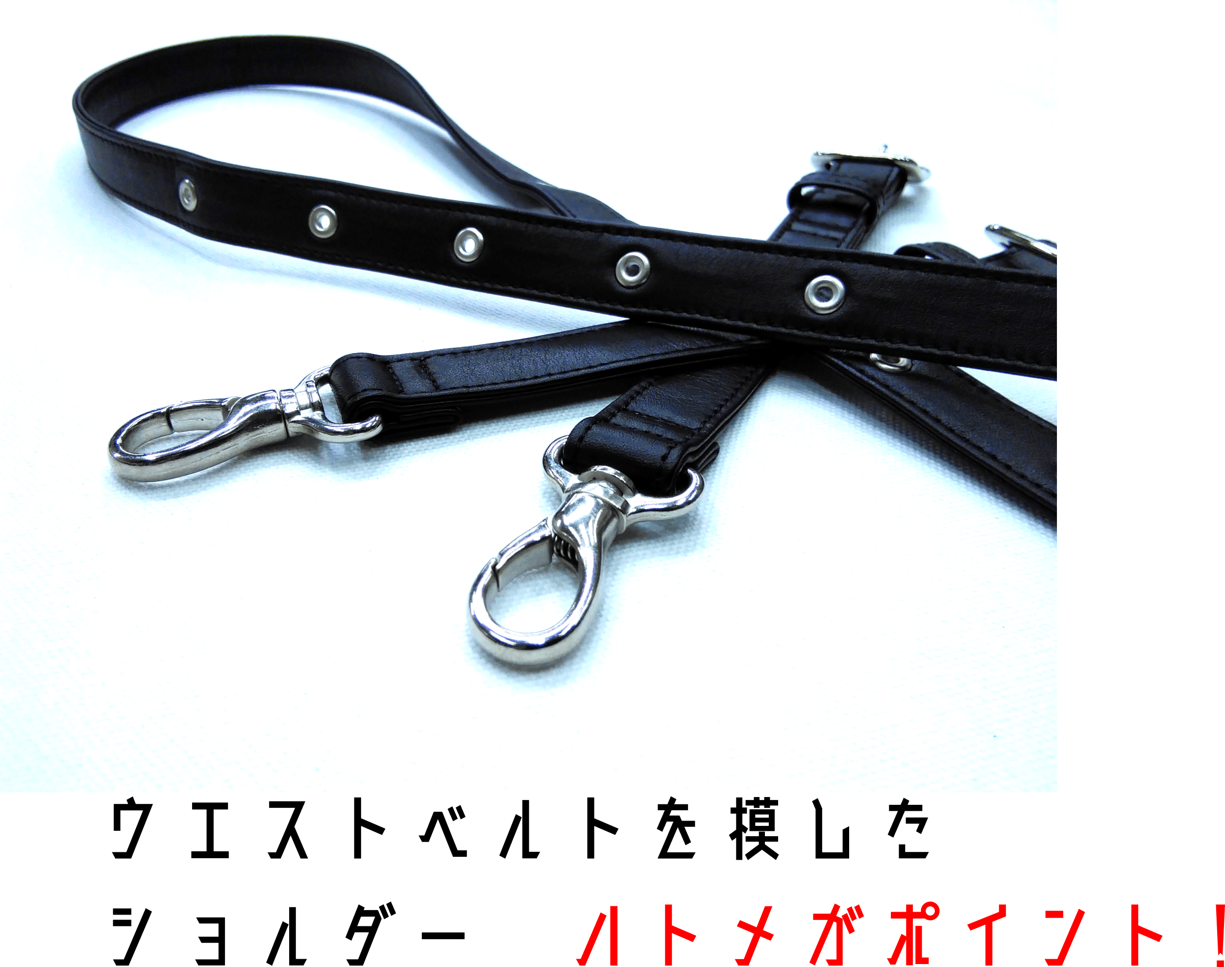 ショルダーストラップには、ウエストベルトをイメージして、ハトメを打ち