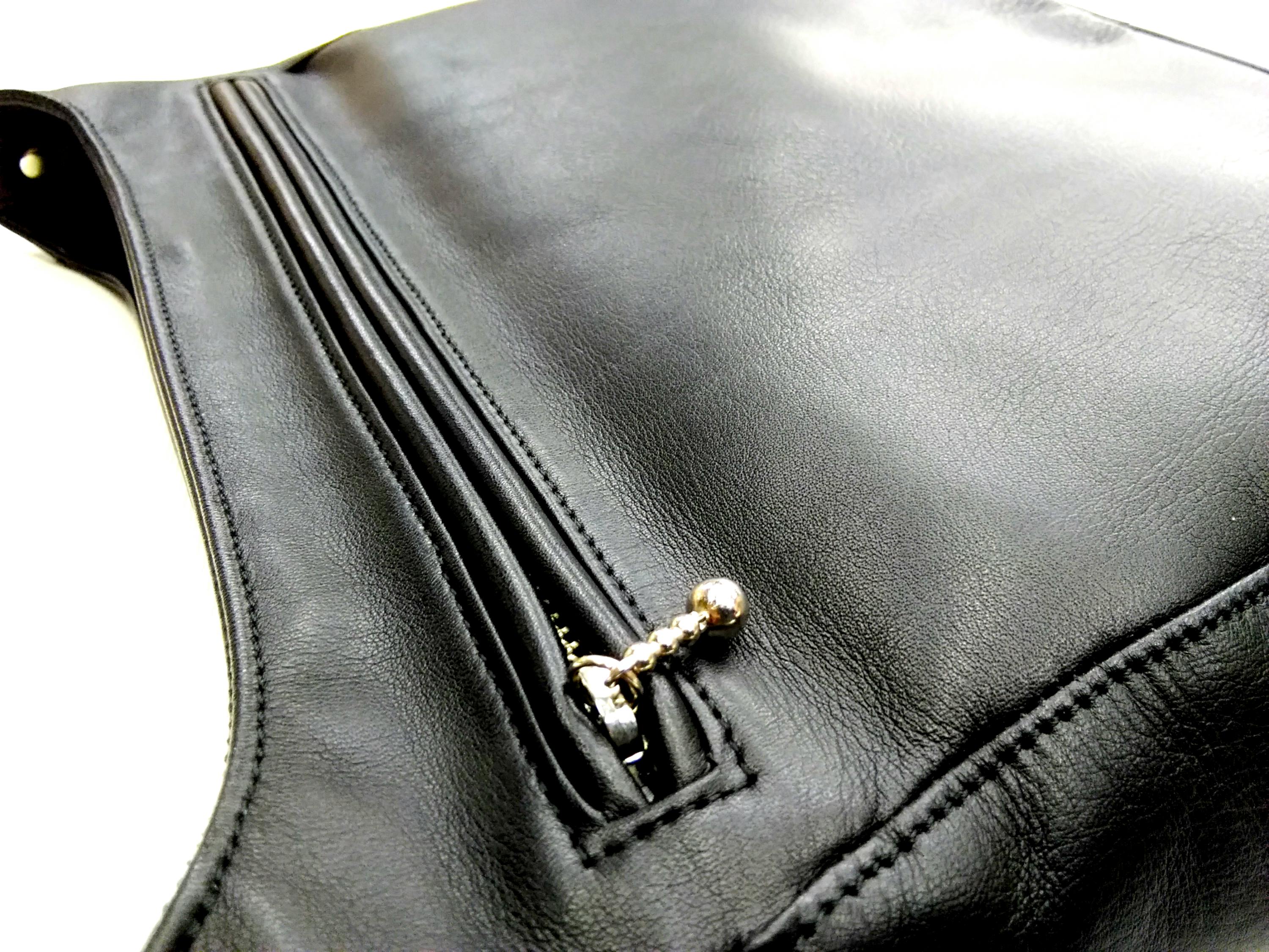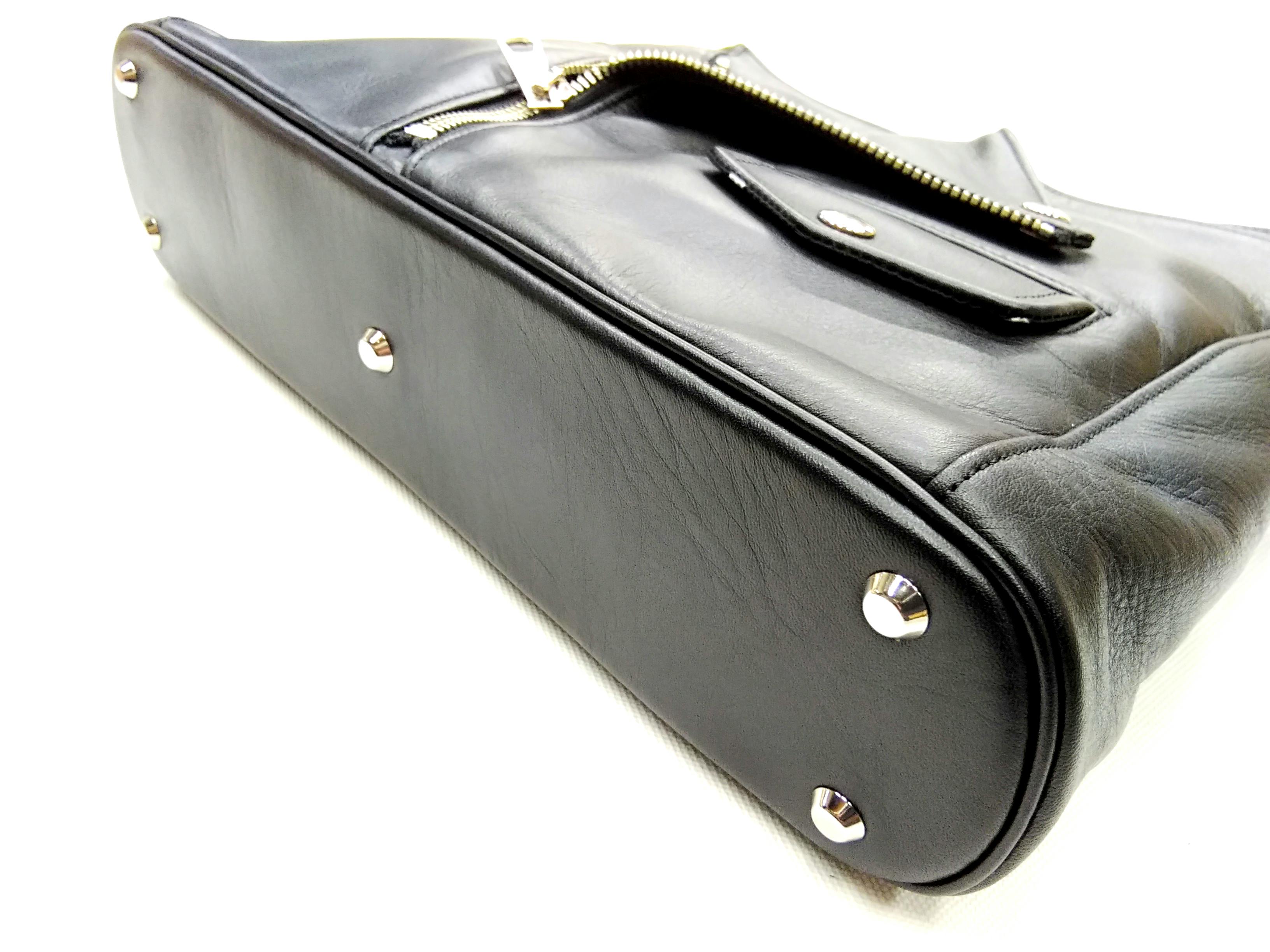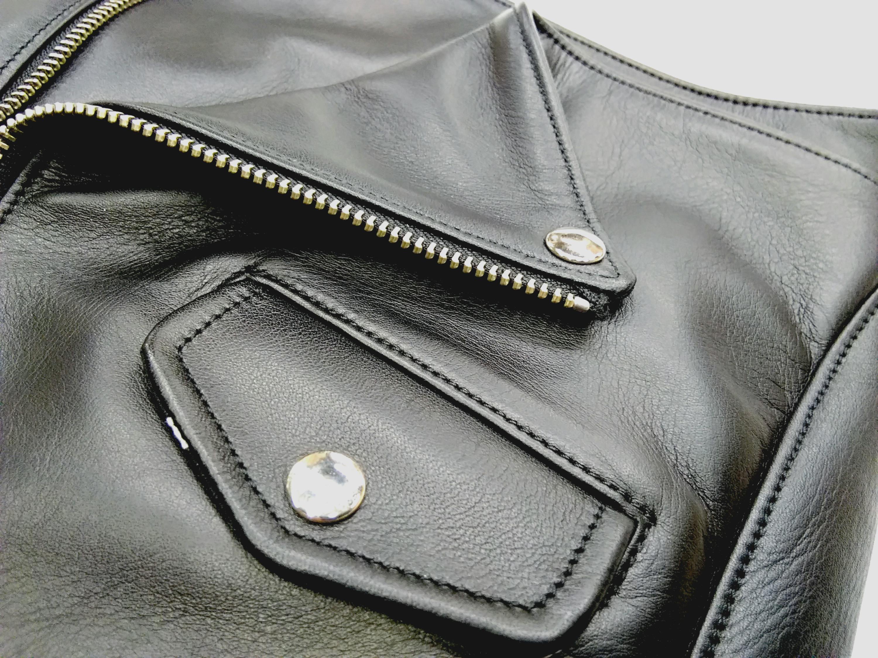私はライダースジャケットが大好きです。ただ、日本の気候だと着れる時期がとても短く、出番が余り無い事が残念で、季節を選ばず使えるバッグに!という思いから作製に至りました。