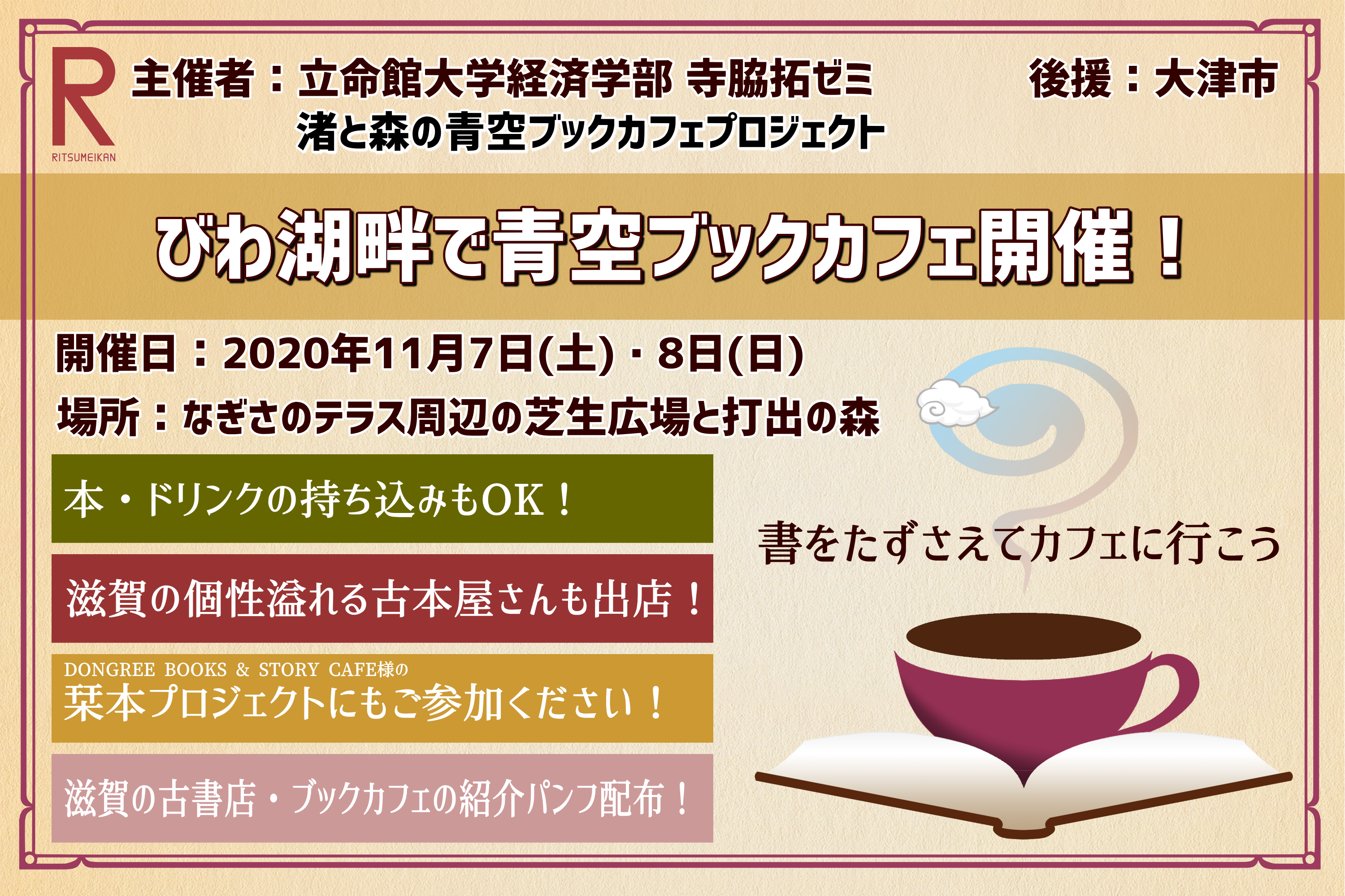 主催者:立命館大学経済学部寺脇拓ゼミ「渚と森の青空ブックカフェプロジェクト」