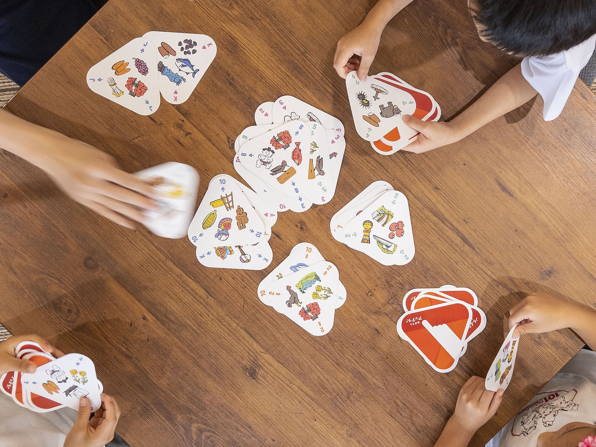 年齢・性別・言語を超えて楽しむことができる簡単なルール。トランプとしても使え、数種類の遊び方ができます。