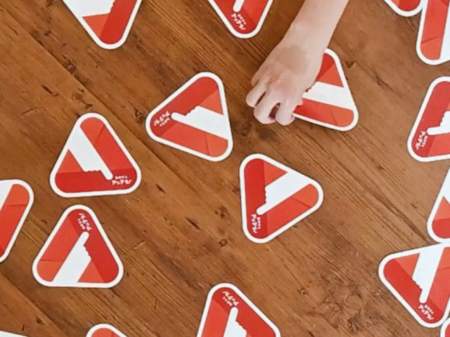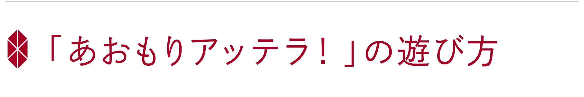 ・山札から1枚ずつめくり、場のカードと同じイラストを見つけたら「アッテラ!」のかけ声で指をさしましょう。