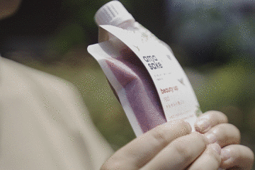 また、女性の軽食としても持ち運びやすいよう、1食135gの飲み切りサイズとしました。パウチ式の容器は紙製のラベルと分けることができるので、ゴミの分別も簡単です。