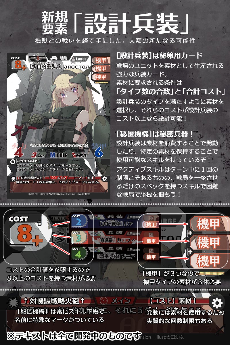 「機獣討滅戦線」にはタクティクスで有用なカードも多く含まれていますので、「tacticStructure」を開発するこの機会に増産を試みたいと思っております。