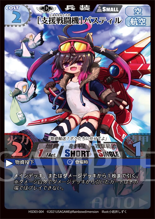 「[支援戦闘機]パスティル」は登場時に1枚ドローできる。汎用性のある航空兵装です。