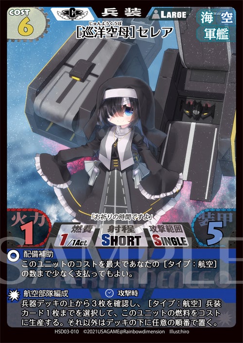 「[巡洋空母]セレア」はこのデッキのキーとなる、展開能力に長けた空母型の兵装です。