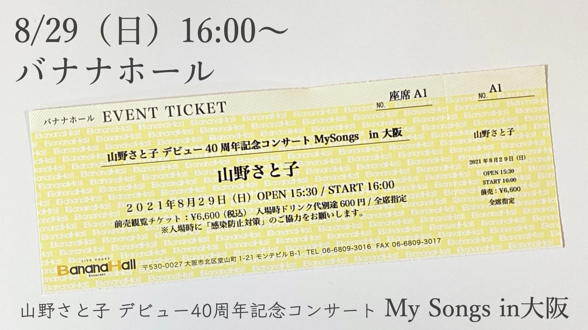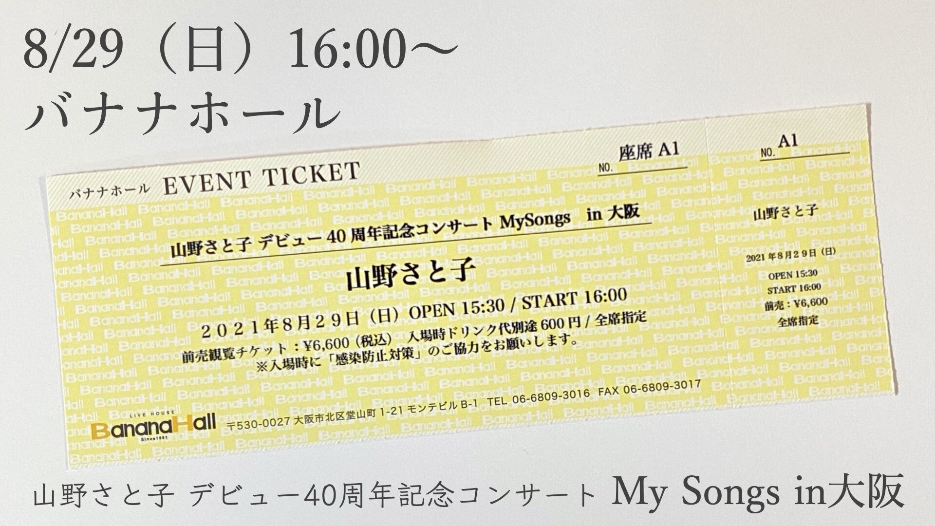 いよいよ今月末の29日(日)は、「山野さと子 デビュー40周年記念コンサート My Songs in 大阪」です。緊急事態宣言の期間中とはなりそうなのですが、コンサートは予定通り開催しようと思っています。