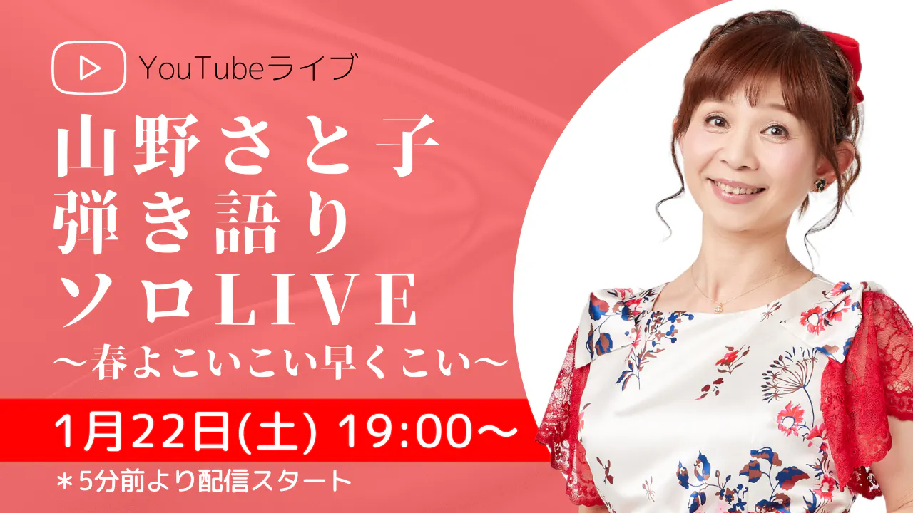 【YouTubeライブ】山野さと子 弾き語りソロLIVE 2022年1月22日(土)19:00〜