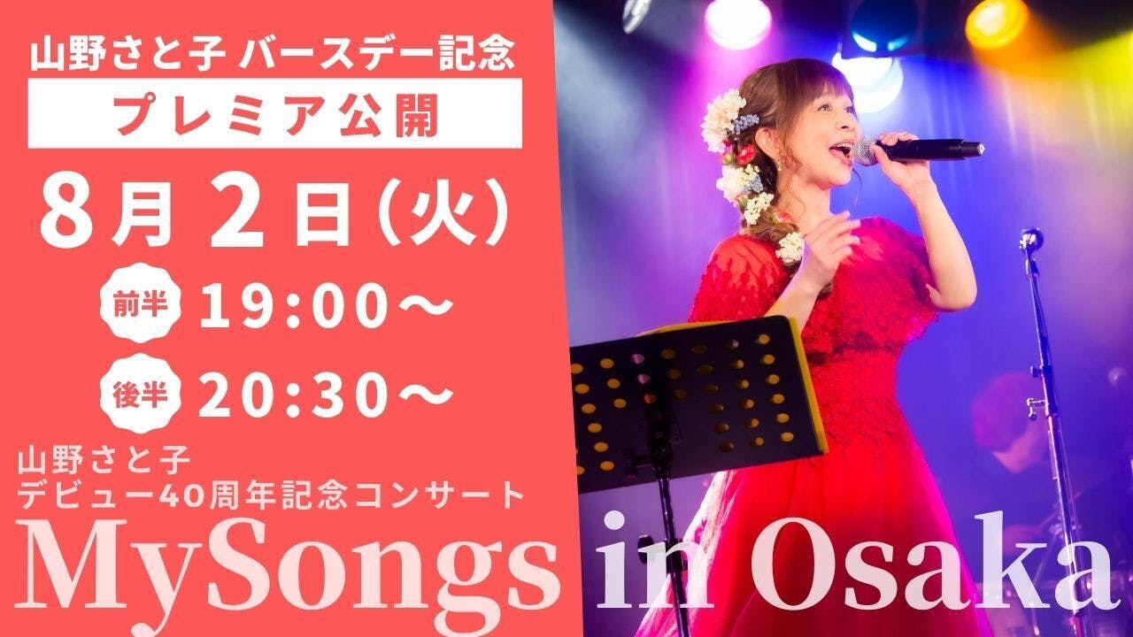 このクラウドファンディングでみなさまに応援していただいて、NEXT GOALで実現することができた、昨年夏開催の【山野さと子 デビュー40周年記念ライブ in 大阪バナナホール】が「山野さと子バースデー記念」として、明日8月2日にYouTubeプレミア公開されることになりました。