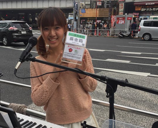 千葉県出身で普段は東京、そして被災地の宮城と熊本で歌を歌ったりボランティア活動をしています。
