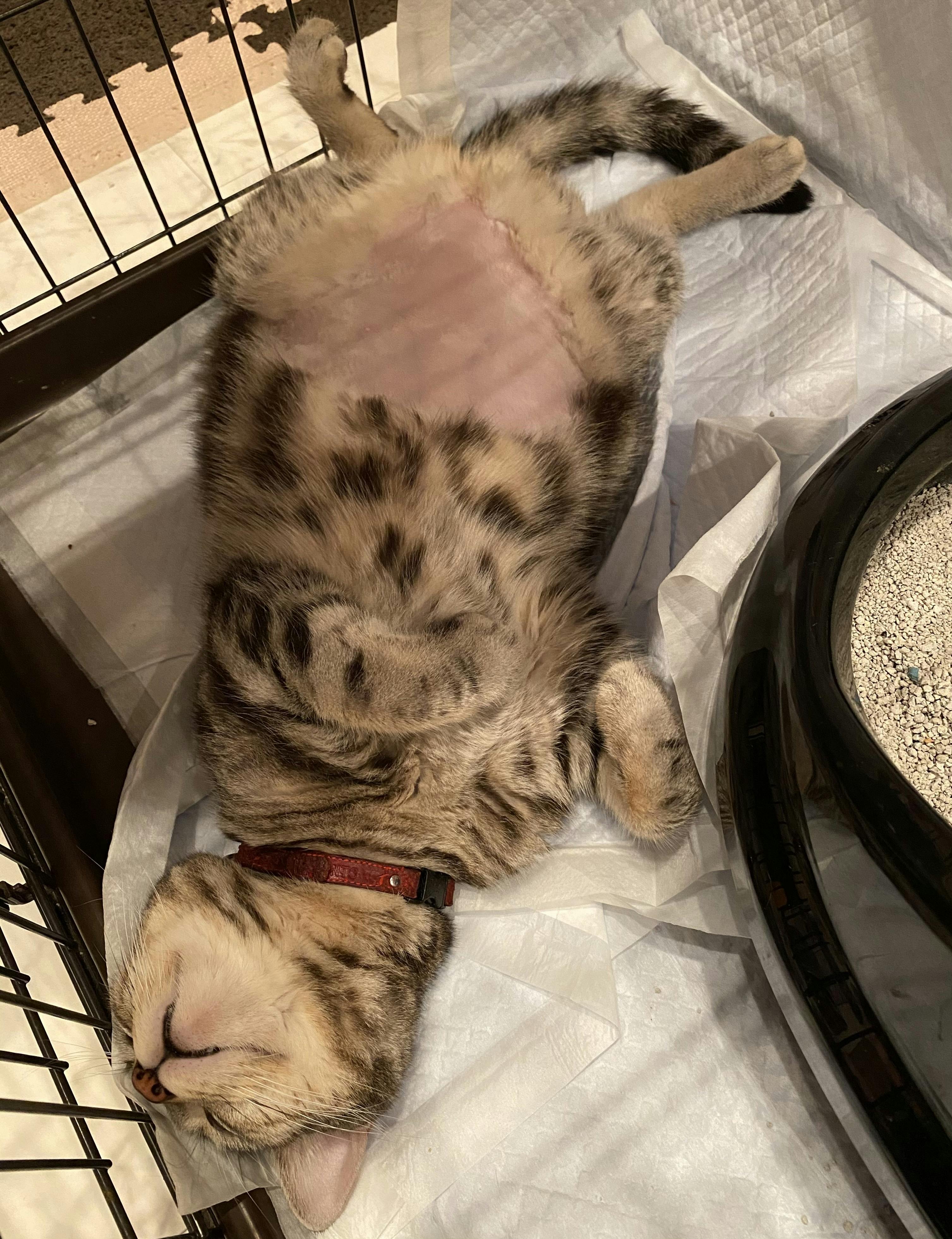 検査の為 お腹の毛を剃っていただいてるので お腹だけスフィンクス的な感じです。
