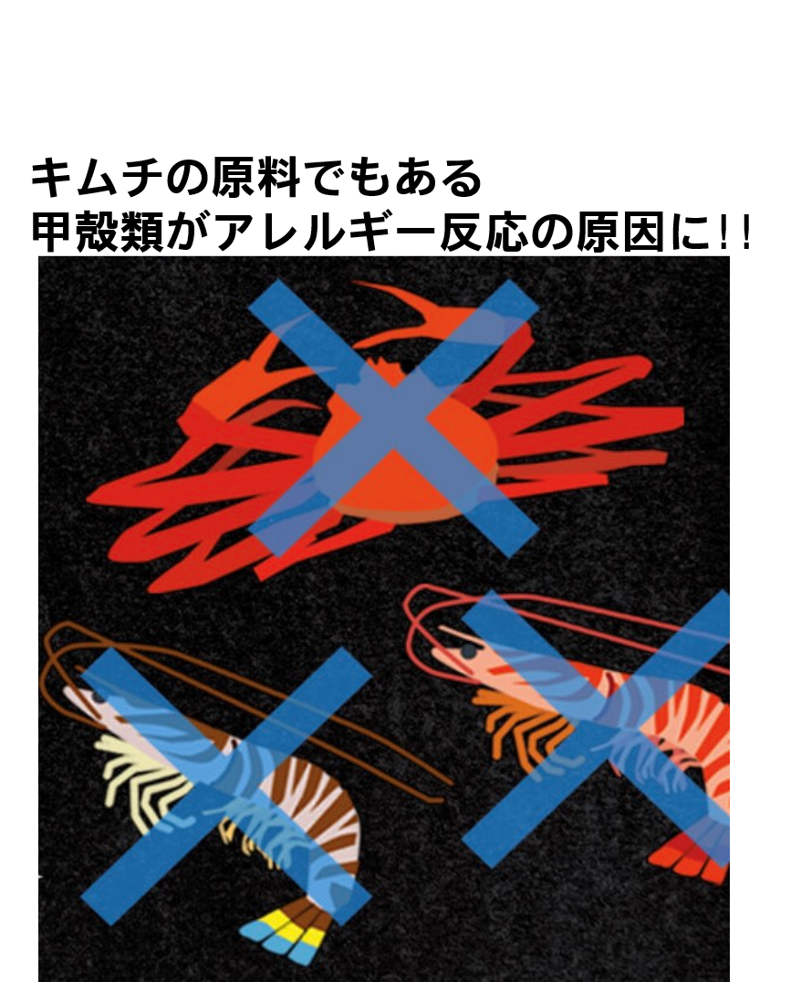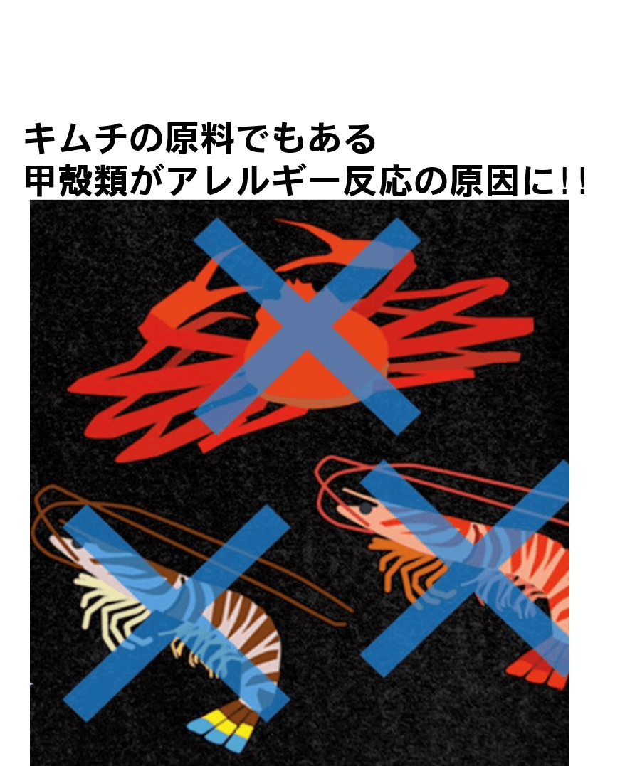 理由を尋ねると、キムチに入っている甲殻類エキスがアレルギーで食べることが出来ないとがっかりされていました。