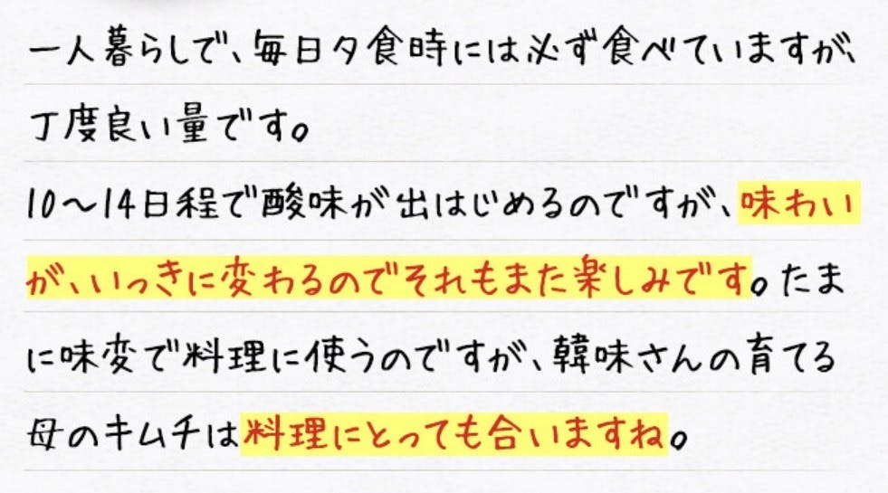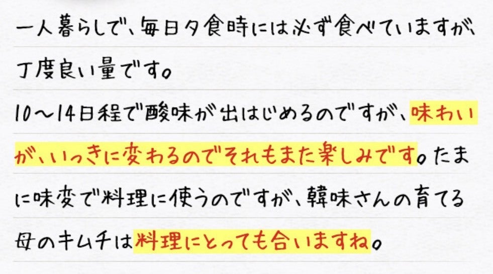 もちろん、このキムチだけを食べて健康体になったわけではないと思いますが