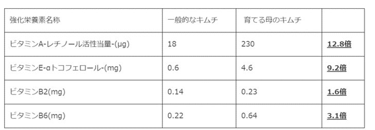 では実際に『育てる母のキムチ』がどれだけの栄養素を含んでいるのかご紹介させて頂きます。