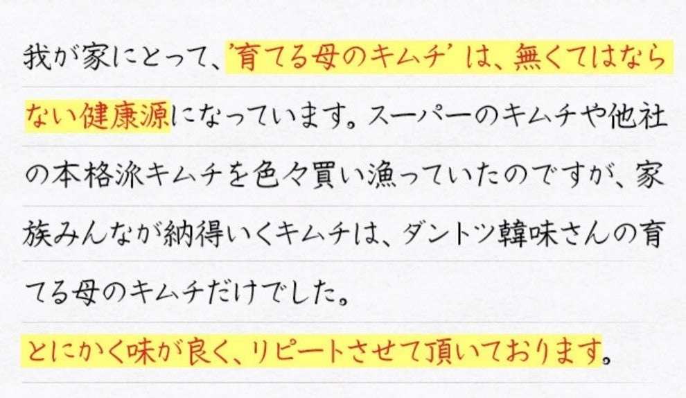 『育てる母のキムチ』には、ここは譲れない!! というこだわりがあります。