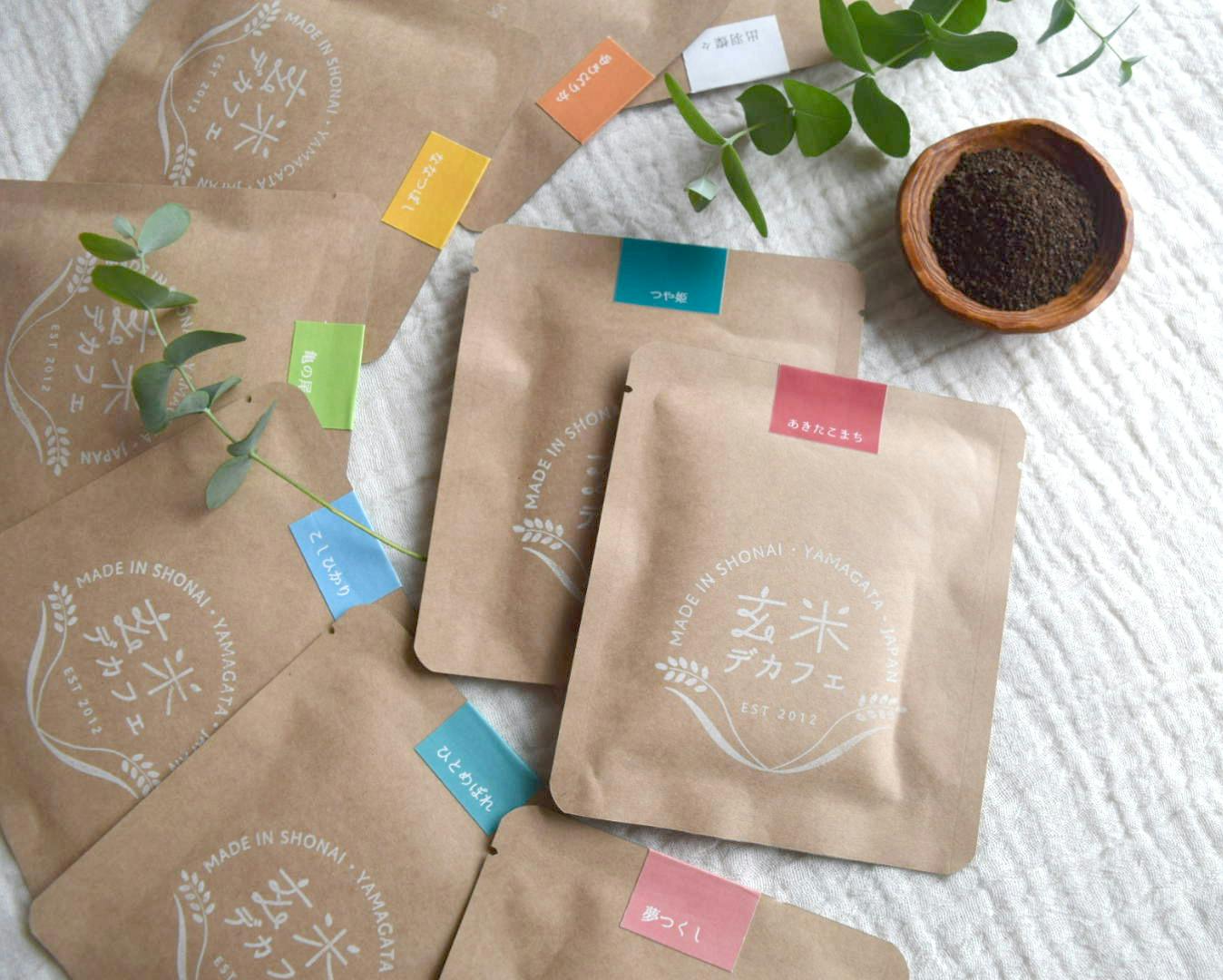 玄米デカフェの代表銘柄、つや姫やあきたこまちなどがセットになった商品です。1ドリップタイプで、美味しさが一杯ごとにキープされています。まずは玄米デカフェってどんなもの?という方にオススメのお試しセットです。また、プレゼントとしてもおオススメしています。