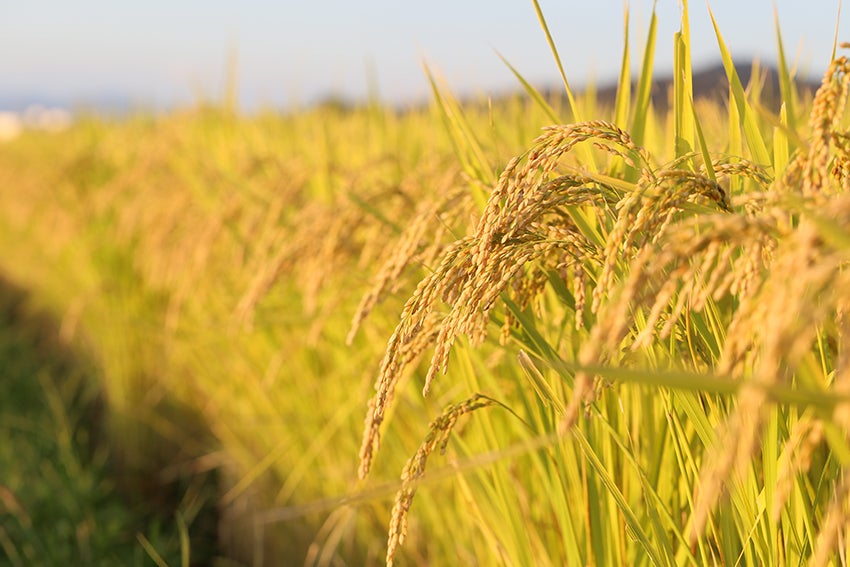 清らかな水と澄み切った自然の中で、のびのびと育つ玄米。