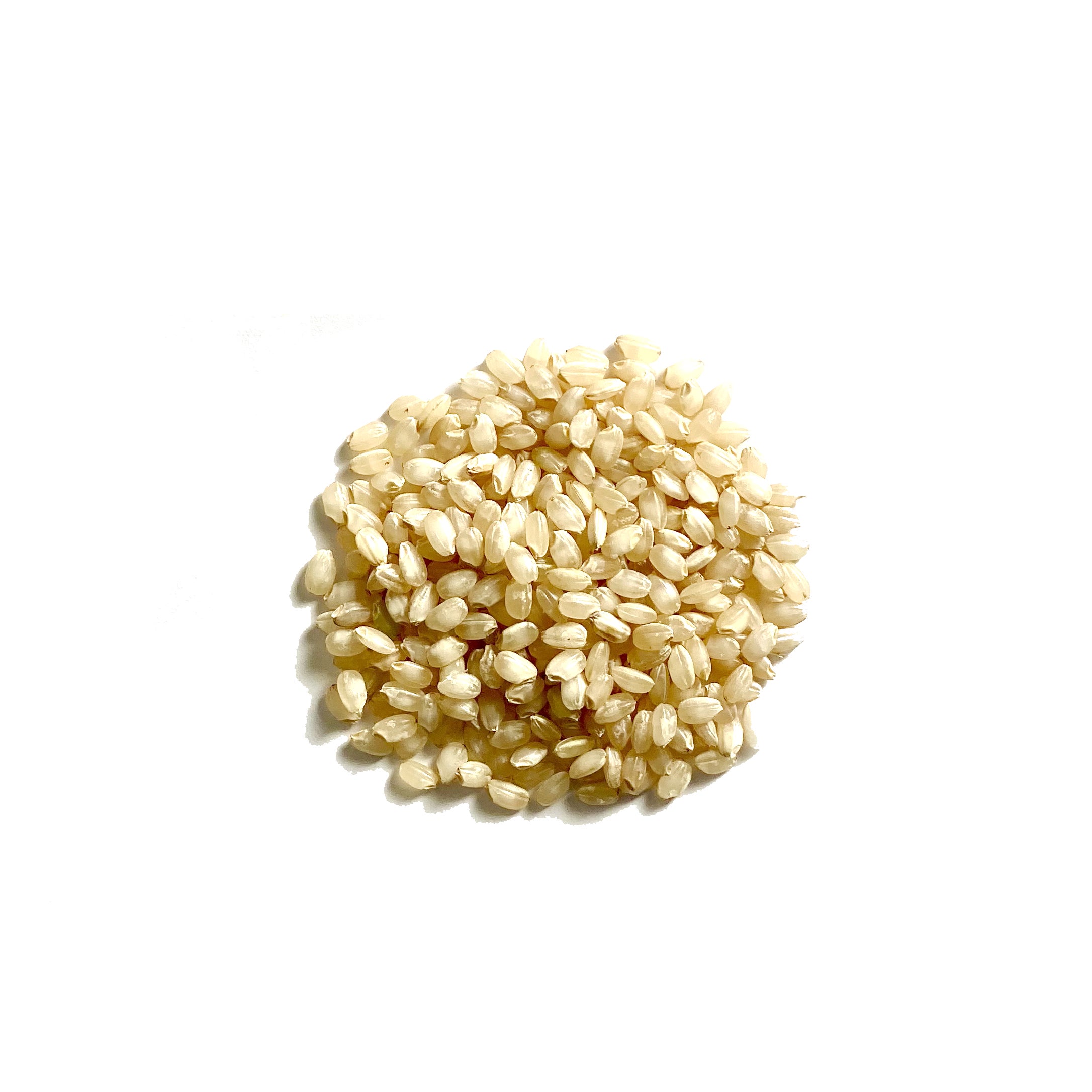 食用米より粒が大きく、タンパク質含有量が少ないのが特徴で、その中心部には白く濁って