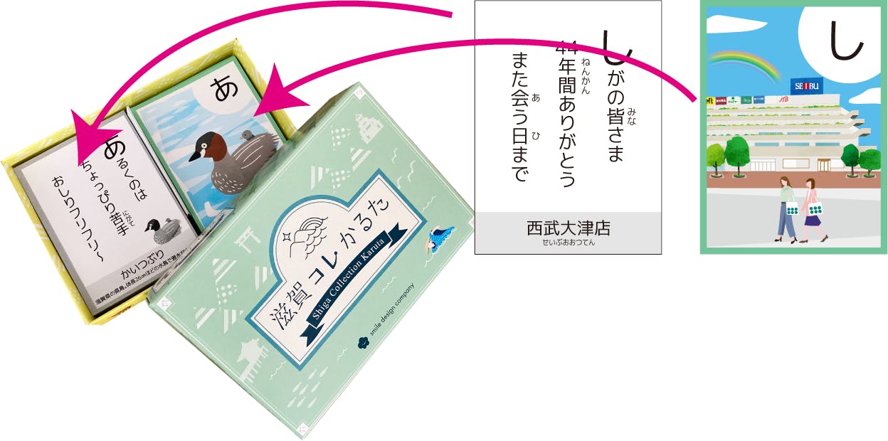 「滋賀コレかるた」の展示を西武大津店さまで行っていただいた時に、制作させていただきました。