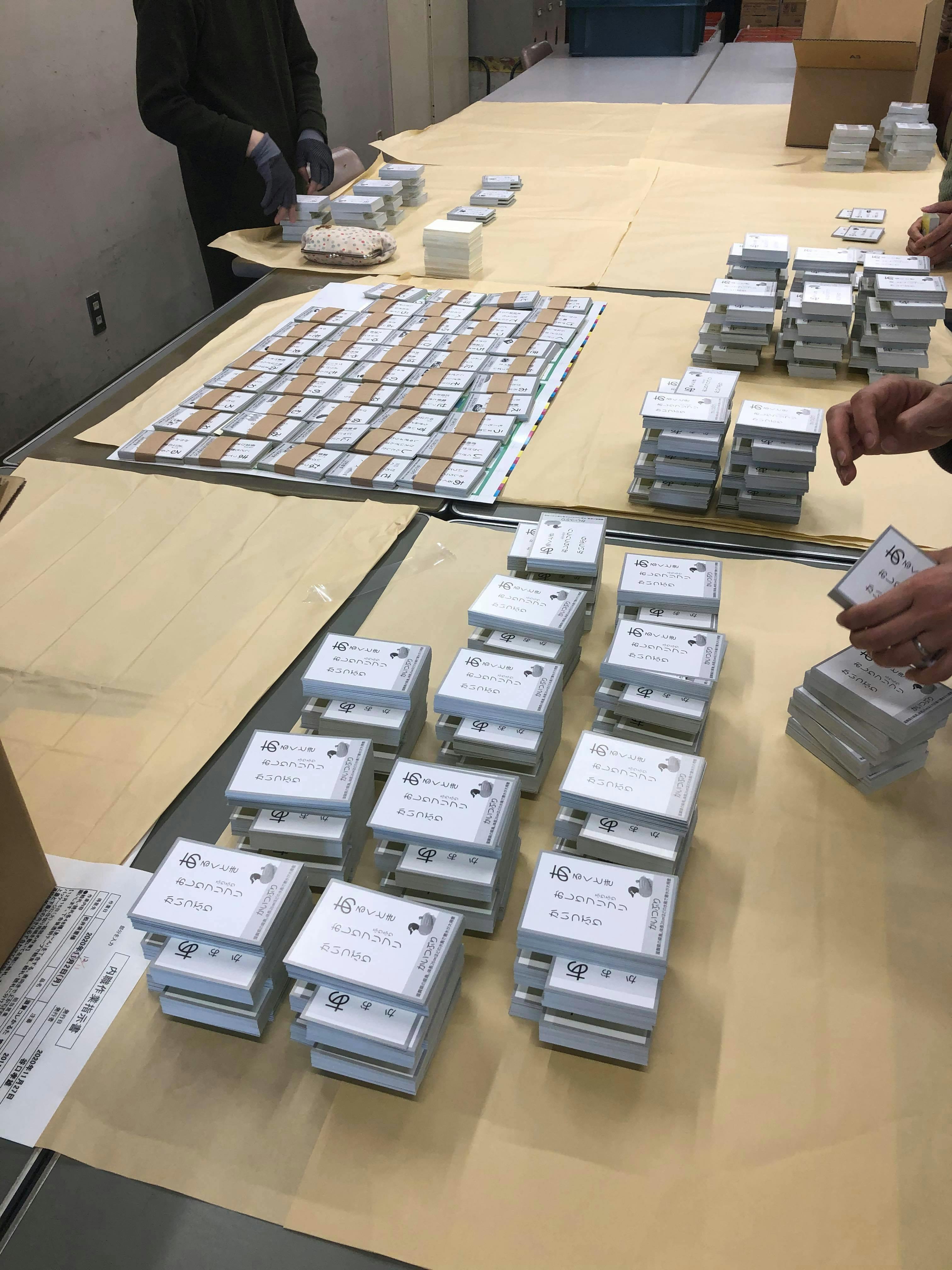 印刷、断裁が終わり、現在仕分け作業中です!