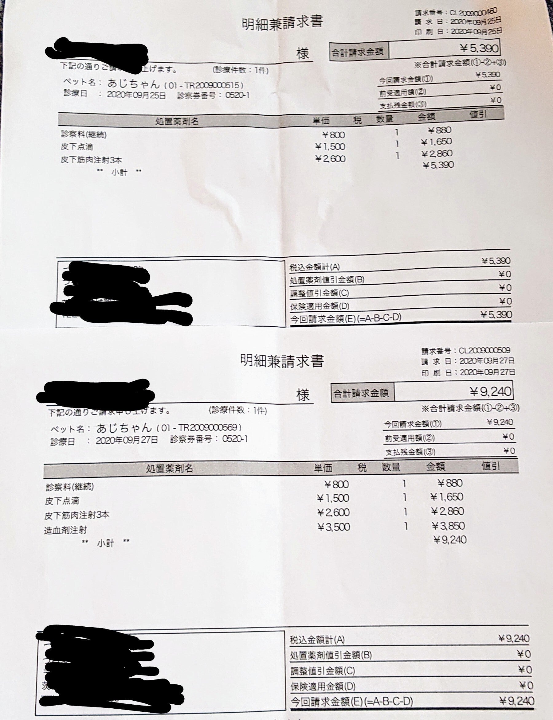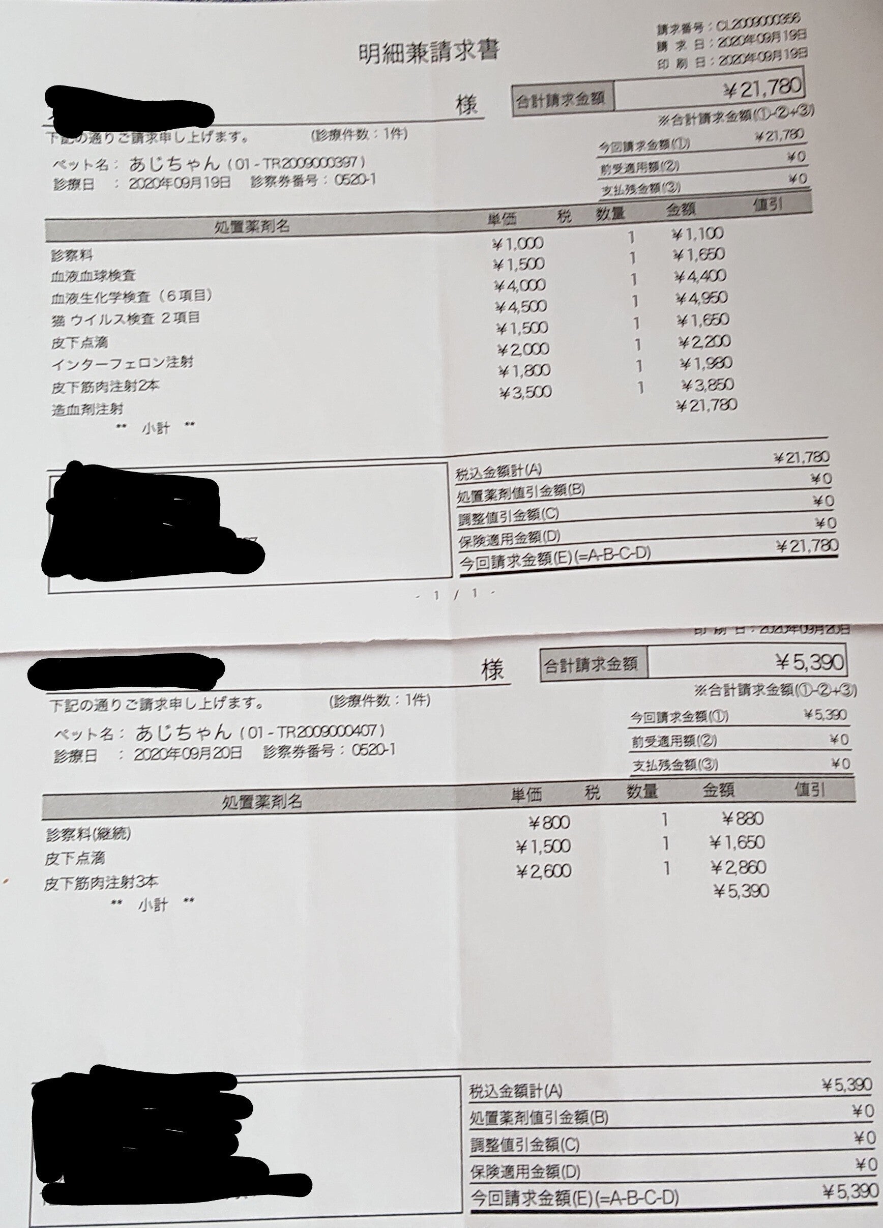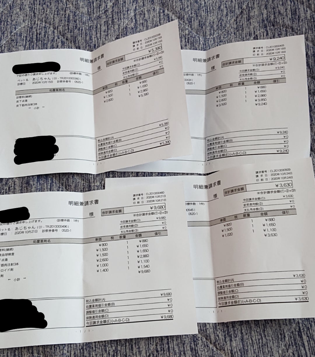 2年前、保護猫あじは事故?で骨折していました。その際にかかった費用は全て実費で負担しています。