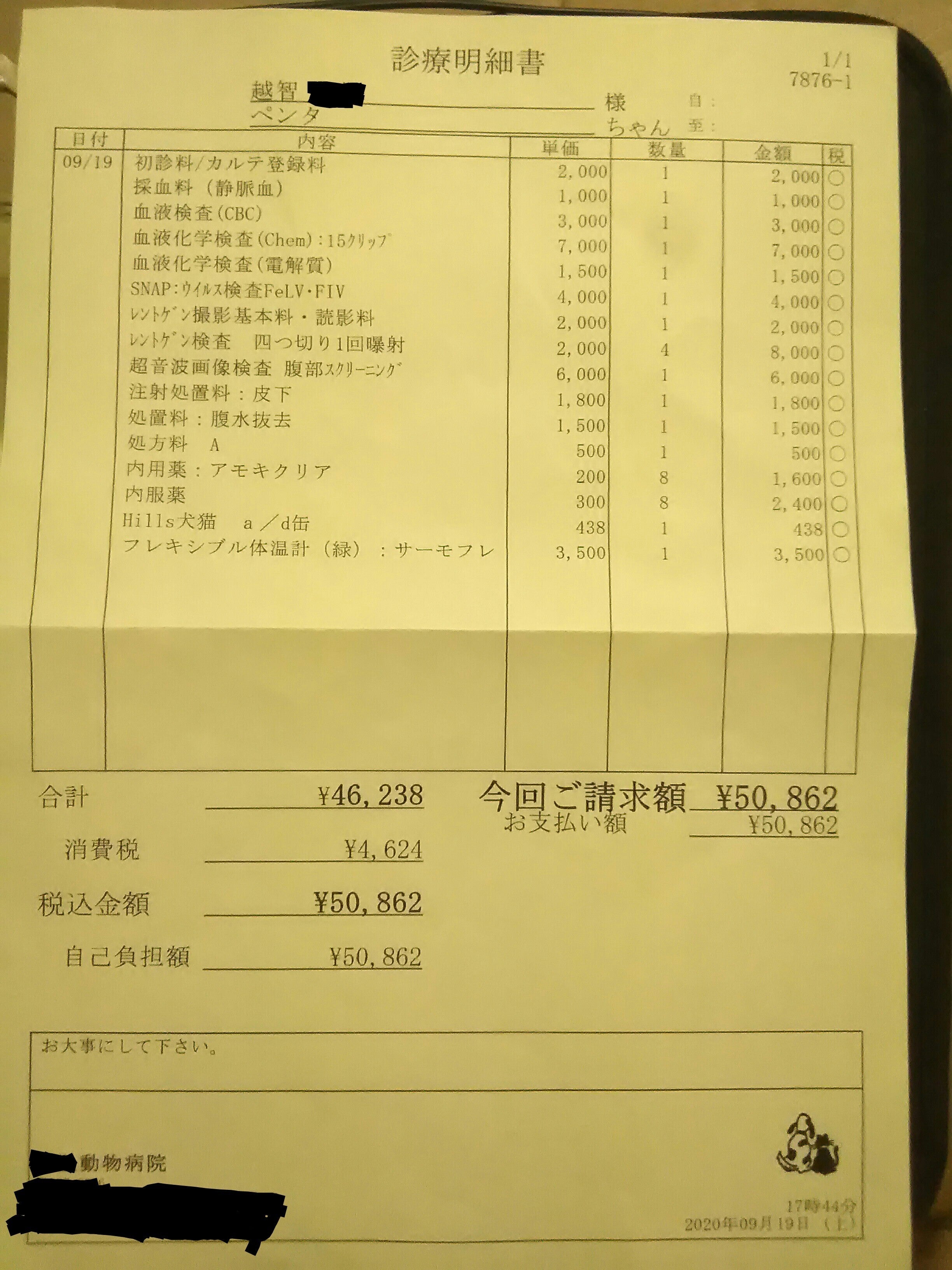 先ほど申し上げましたように、全部で130万円ほどの費用がかかると思われますが、ペンタの体重が今後どれくらい増えるのか、また、動物病院さんでの今後の検査にかかる費用の詳細など、少し分からない部分があり、多少アバウトになってしまっている部分もありますが、大まかな費用は正しいと思われます。