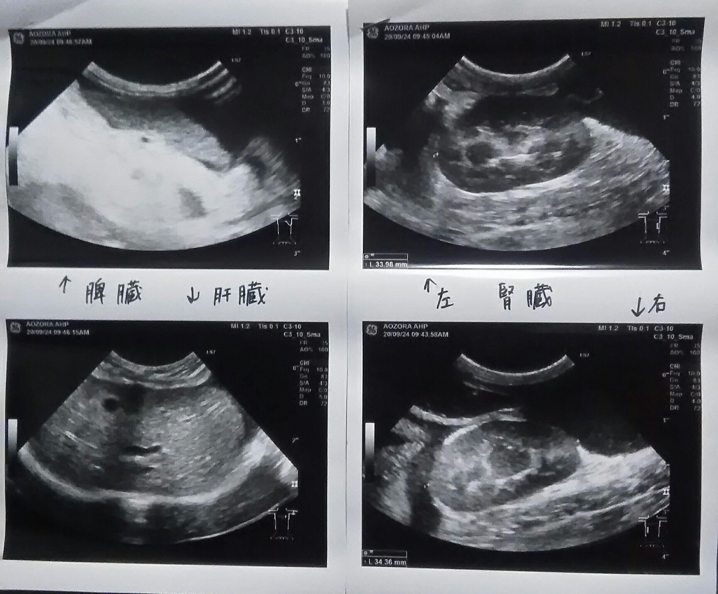 先ほどのエコー写真の、黒い部分はほとんど腹水だそうです。(一部の黒い部分は臓器だそうです。)腹水は、放っておくと呼吸困難を引き起こす可能性があるらしいので、かなり恐ろしいです。