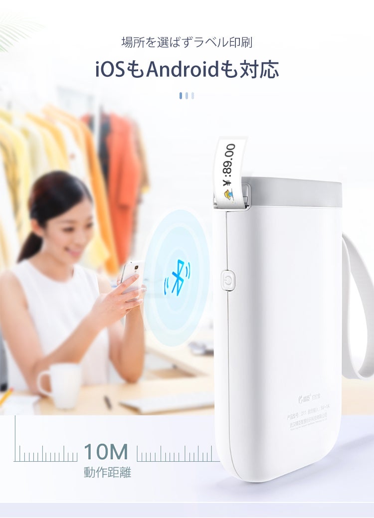 「NIIMBOT」本体とアプリをインストールしたデバイスの距離は約10mまでなら離れていても作業を進めることができますよ。iOS、Androidどちらにも対応!