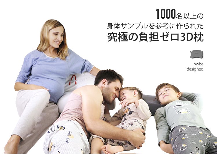 Amyasのスイス研究開発センターでは、1,000人を超えるアジア人の身体サンプルを収集・研究。自然な睡眠姿勢を維持し、頚椎を保護できるように3D湾曲デザインを採用しました。