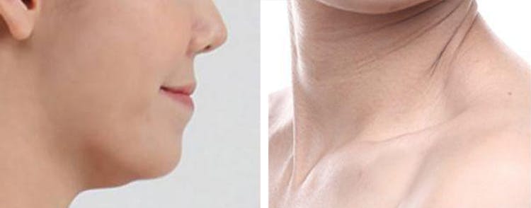 あごから首のラインをなぞっていくと…いかがでしょうか、シワや二重あごになっていませんか?次に少しだけ上を向いて触れてみましょう…先程よりも改善されていませんか?