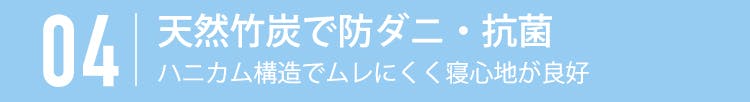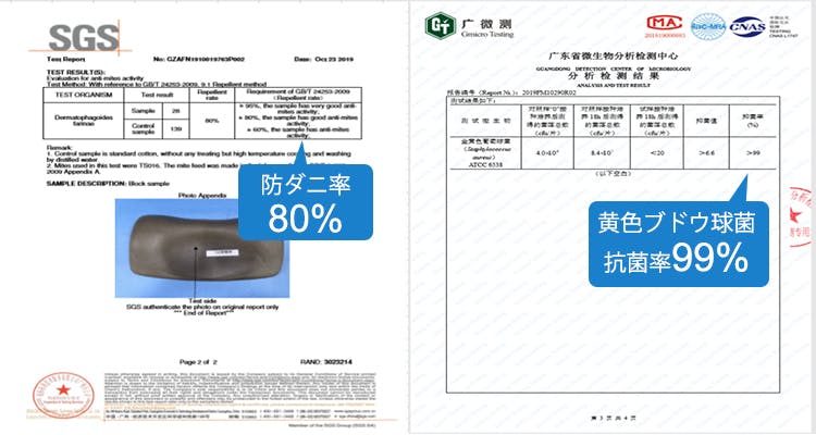 ②天然竹炭使用で防ダニ・抗菌。EUの衛生基準認証試験に合格